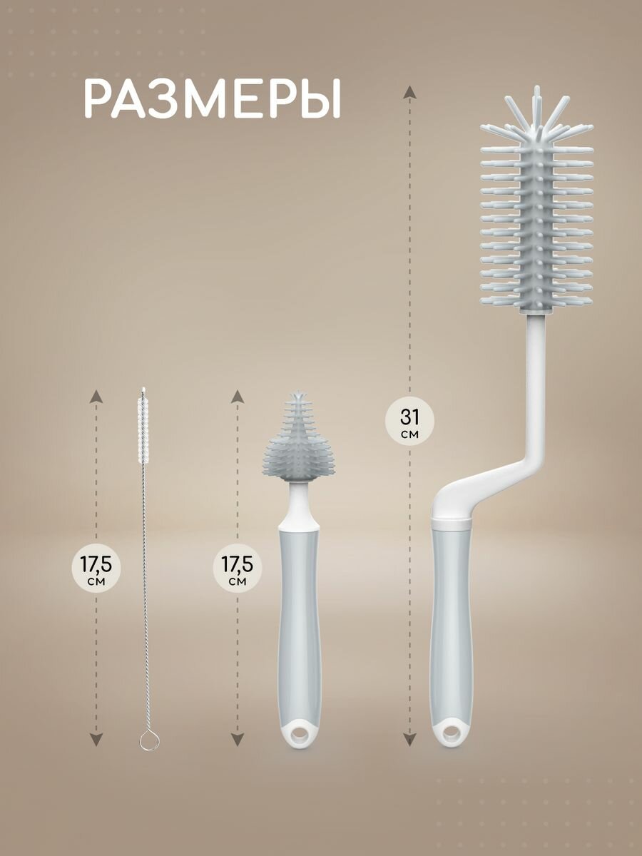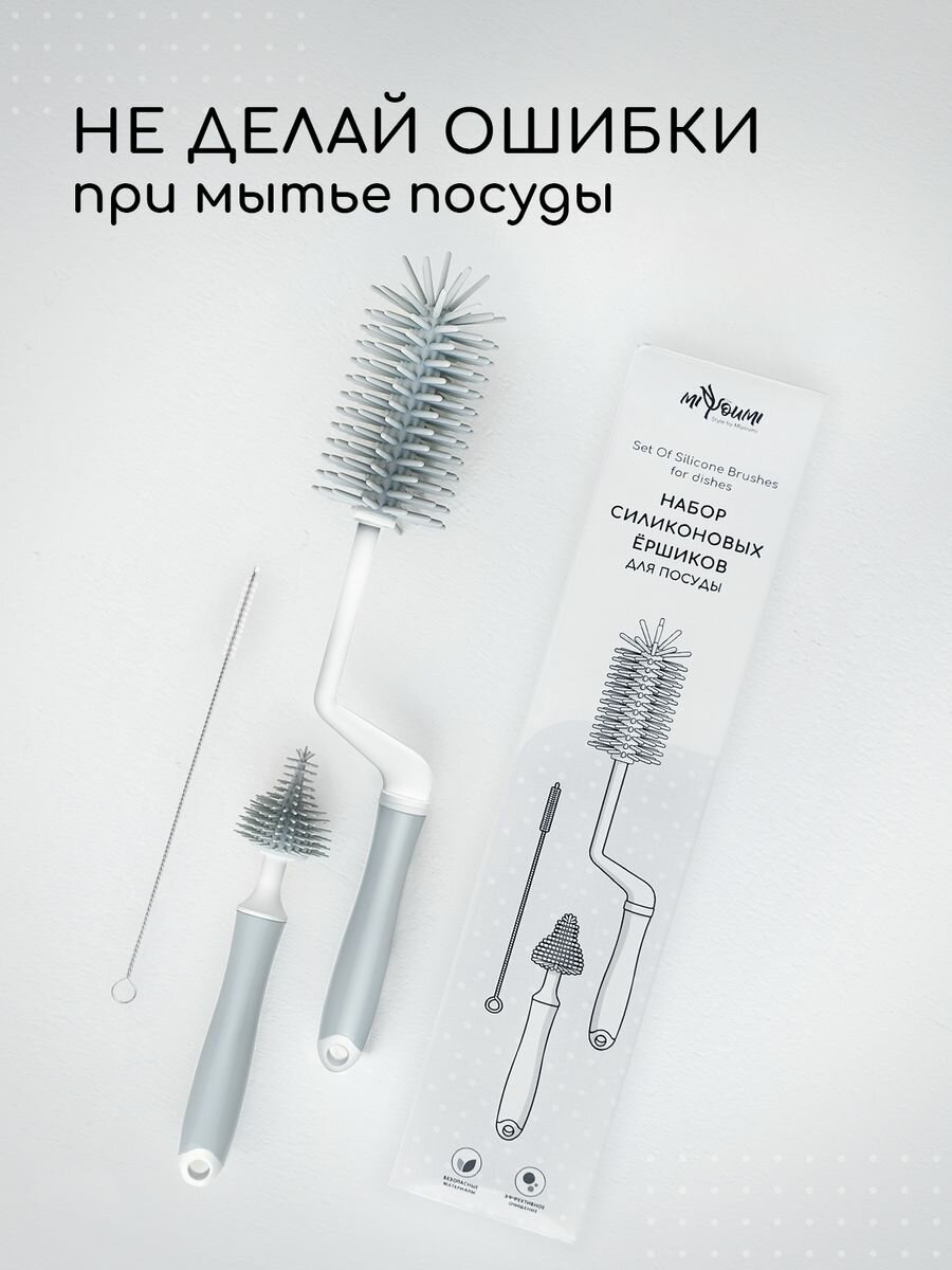 Набор ершиков Miyoumi, для бутылочек, сосок, силиконовые, 3шт информация: