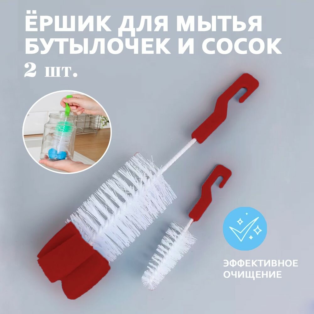 10 цен на Ершик для бутылок 2 шт. с губкой / Ершик для детских бутылочек и сосок, цвет красный 134-52