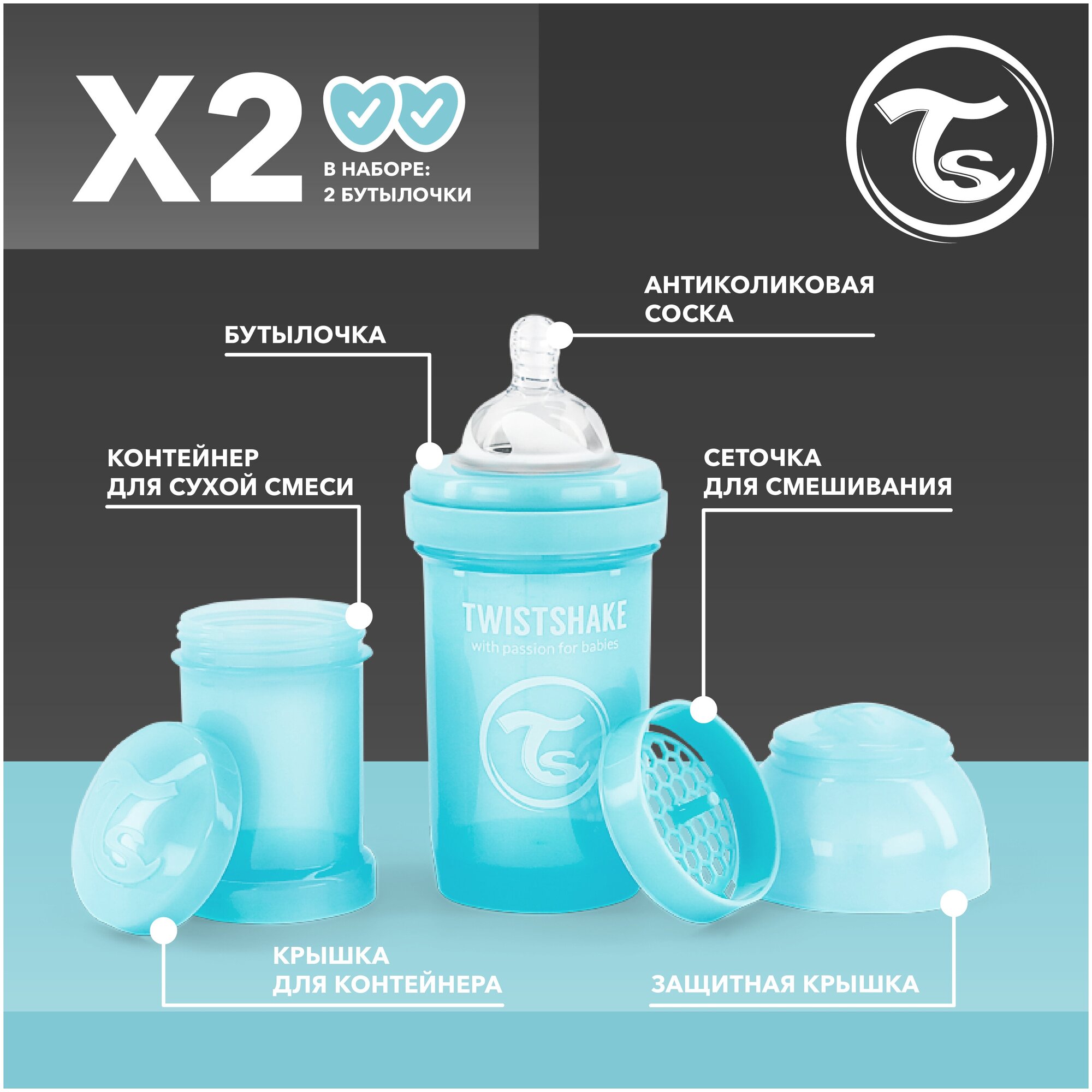 Набор антиколиковых бутылочек Twistshake. 180 мл. 0+ мес. Пастельный синий информация: