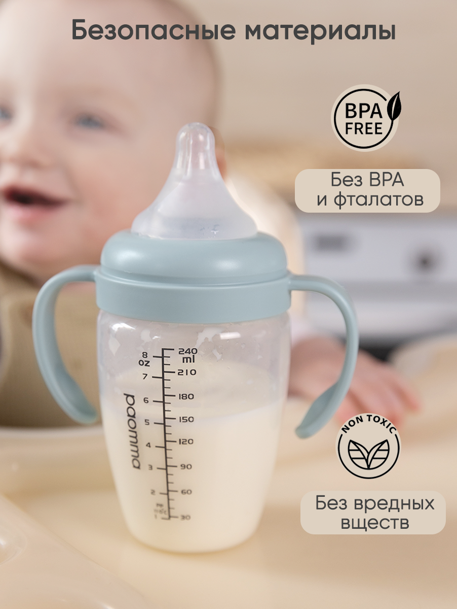 Paomma / Детская бутылочка для кормления с ручками, антиколиковая с соской L(быстрый поток), 240 мл информация: