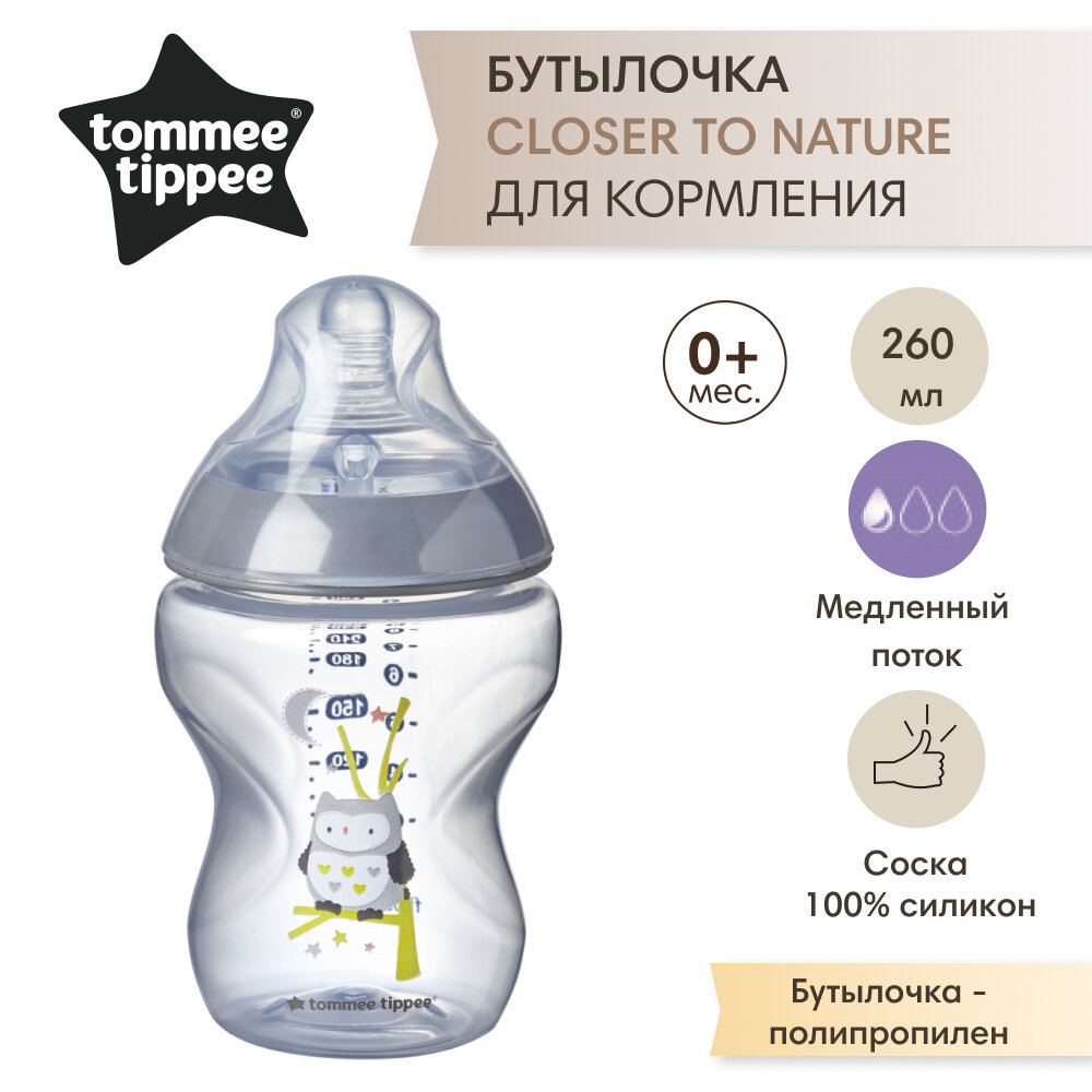Бутылочка для кормления Tommee Tippee, Closer to nature, 260 мл, серый, 0+ информация: