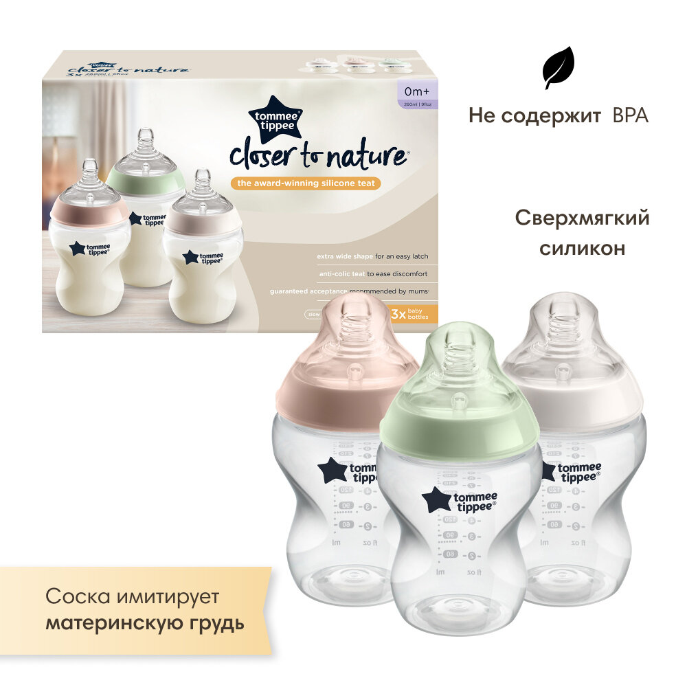 10 цен на Бутылочка для кормления Tommee Tippee, Closer to nature 260 мл, 3 шт 0+