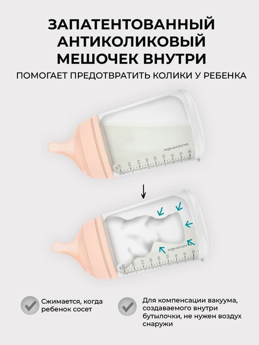 SUAVINEX Zero.Zero Бутылочка для новорожденных 0+ ( медленный поток) 180 мл, антиколиковая бутылочка с соской информация: