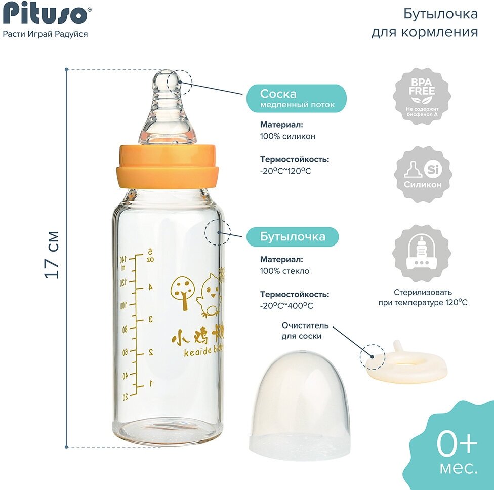 10 цен на Бутылочка для кормления Pituso (стекло) 140 мл Yellow/Жёлтый