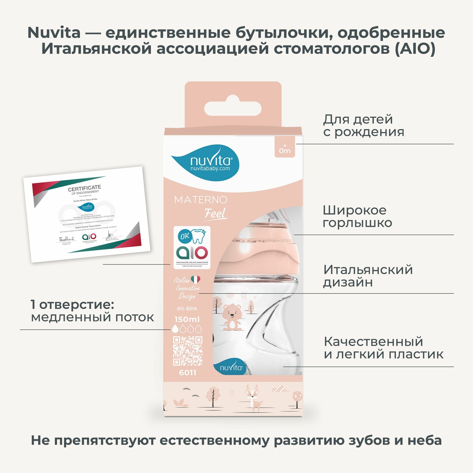 Отзывы на Бутылочка антиколиковая для кормления новорожденных Nuvita Materno Feel 150 мл, пластиковая, с медленным потоком, розовый
