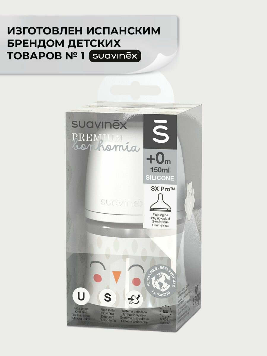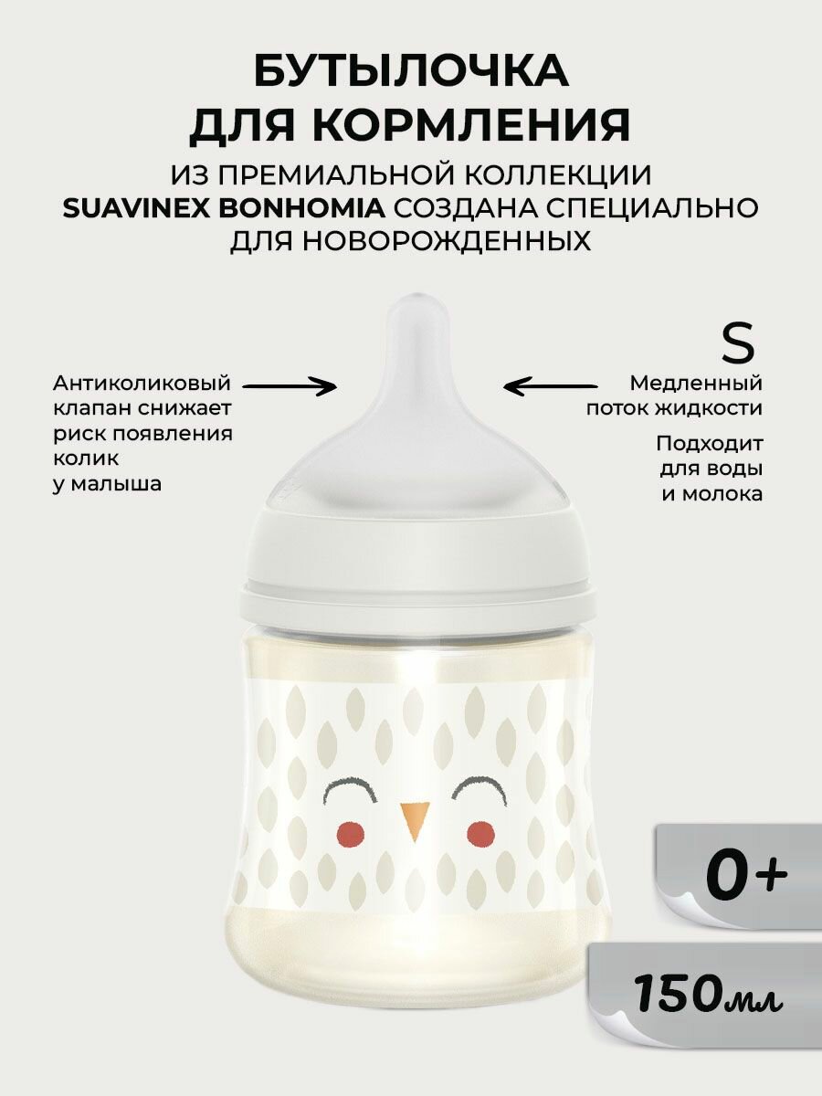 Бутылочка для кормления 150 мл. с соской 0м+ Suavinex, поильник для новорожденных с противоколиковым клапаном информация: