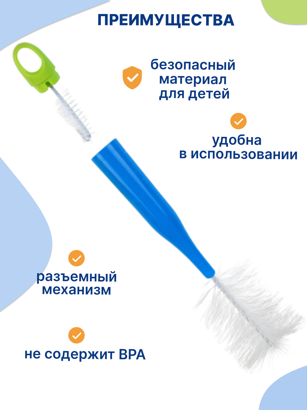 Ершик для мытья бутылочек и сосок (Lux) от бренда Uviton, 2 предмета информация: