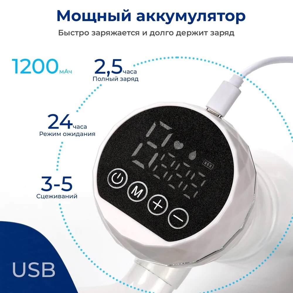 Молокоотсос электрический беспроводной CASTLELADY со встроенным аккумулятором бесшумный 3 режима работы информация:
