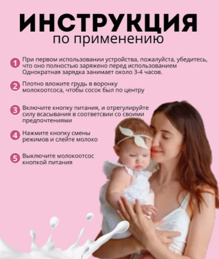 Молокоотсос электрический, с функцией массажа, бесшумный, от аккумулятора, бутылочка информация: