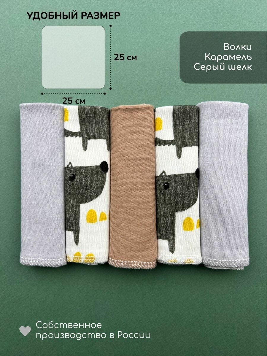 Платочки-слюнявчики трикотажные набор 5 шт LooJoo Волки Хлопок 100% информация: