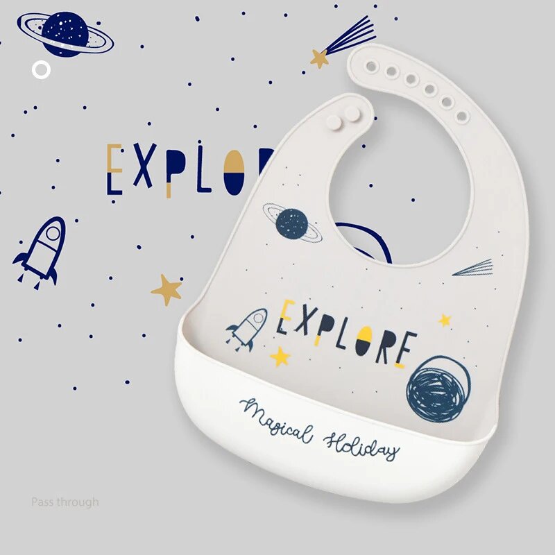 Детские непромокаемые нагрудники Ayaco.Fan силиконовые с мультяшным принтом, Белый информация: