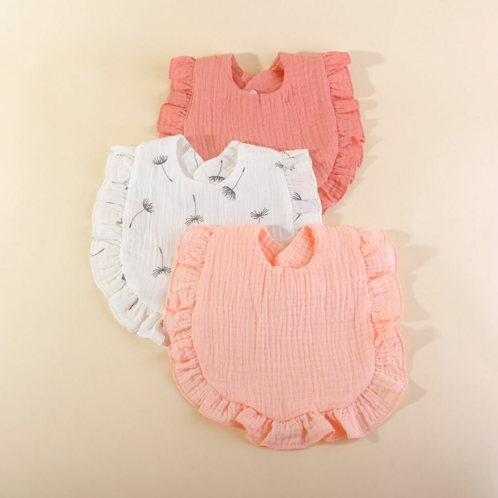 Детские нагрудники для еды, мягкие дышащие слюнявчики, тканевые с рюшами и отрыжкой, банданы кормления младенцев, 3 шт. информация: