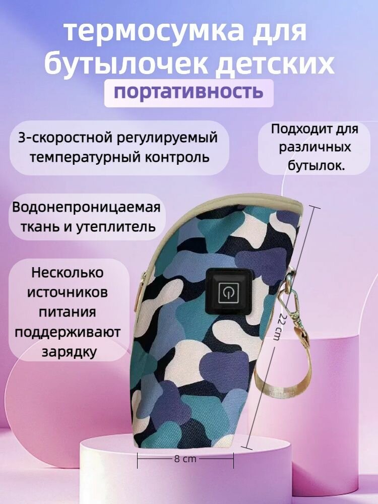 Подогреватель для бутылочки портативный, бутылочек, молока и воды с USB, Камуфляжно - Синий 932 ₽