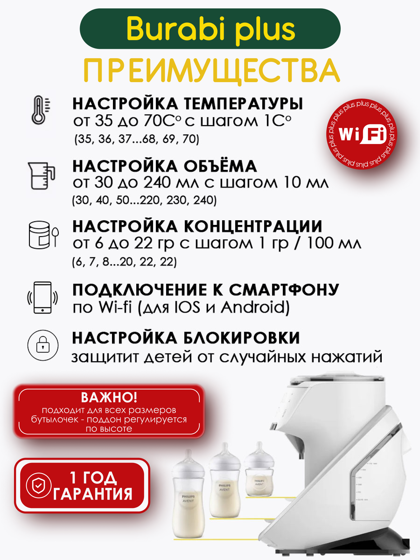 BURABI PLUS Milk Maker машина для приготовления детской молочной смеси с WI-FI и управления со смартфона информация: