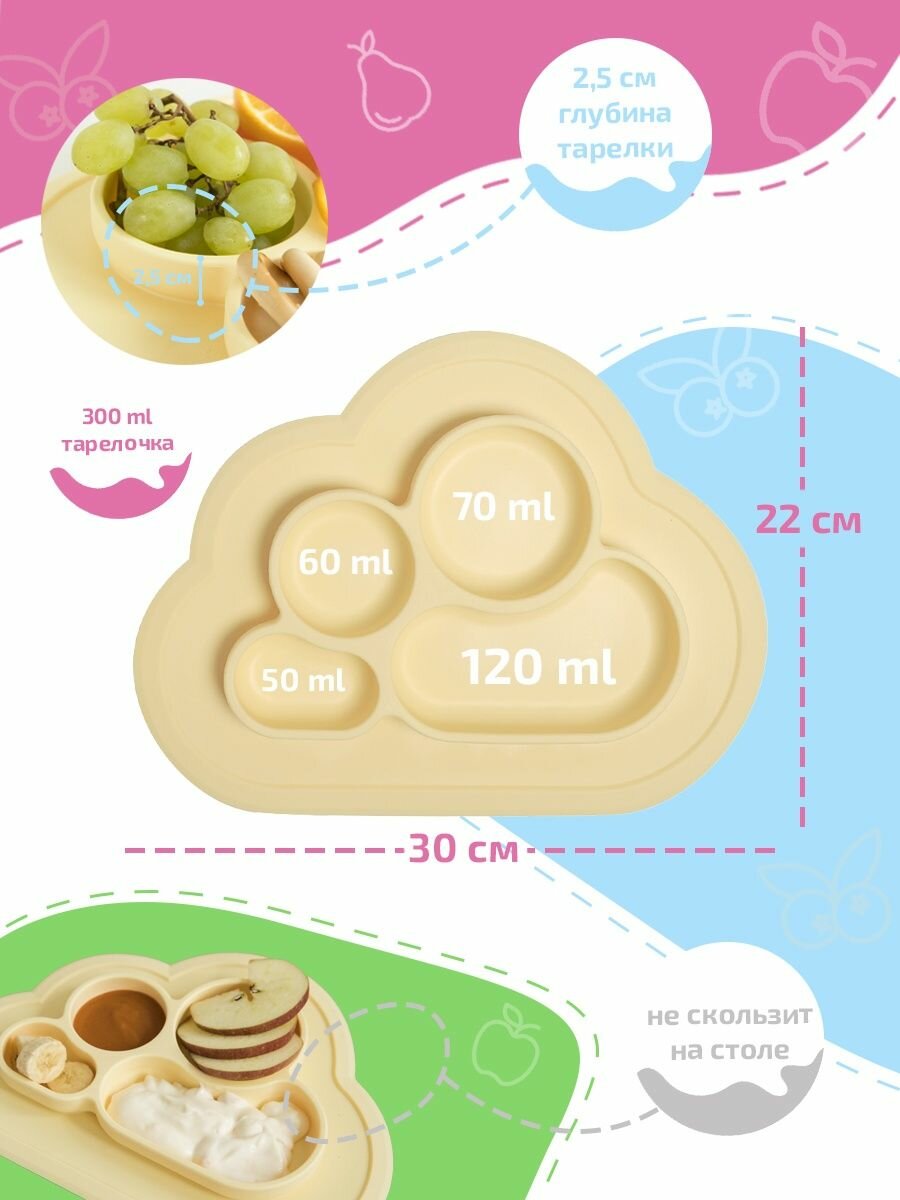 Тарелка детская силиконовая с секциями на присоске, Tessolo Home желтый информация: