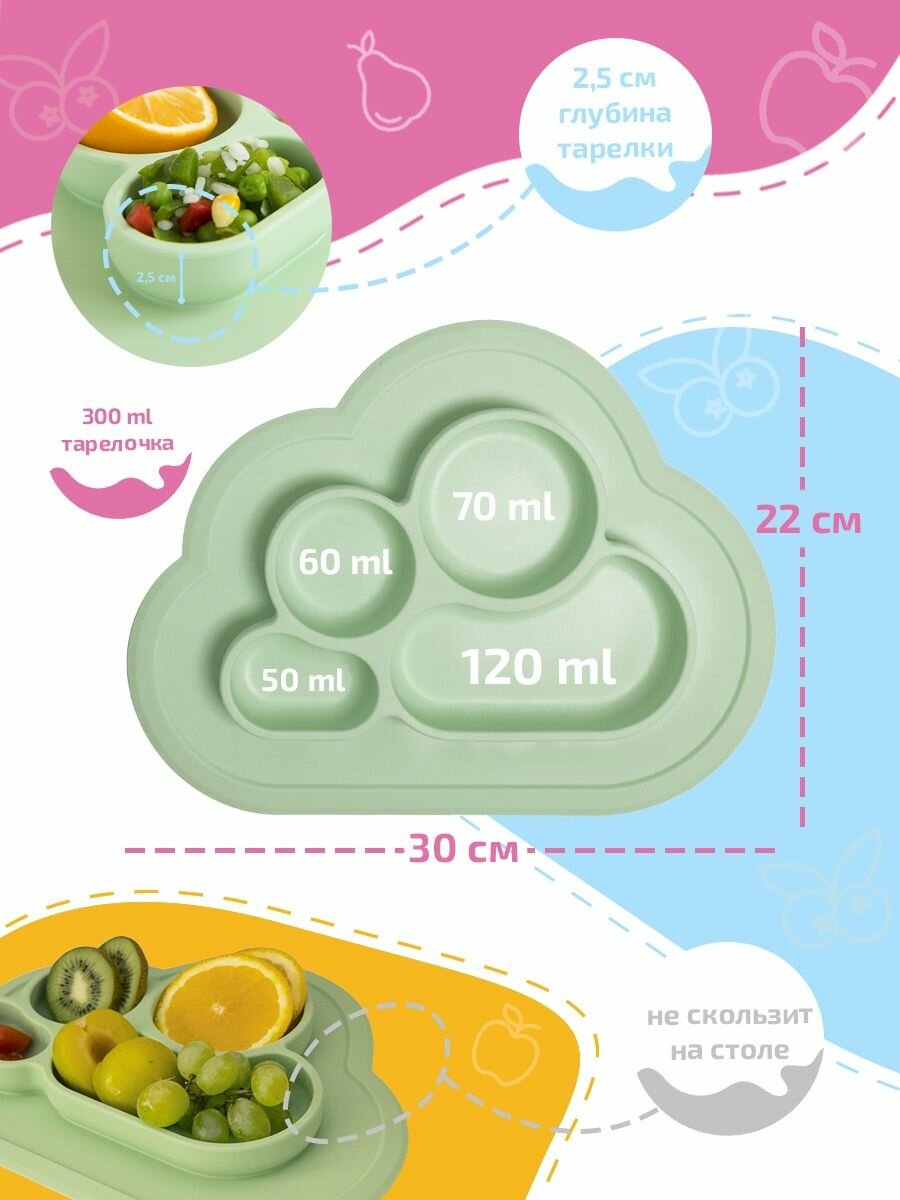 Тарелка детская силиконовая с секциями на присоске, Tessolo Home салатовый информация: