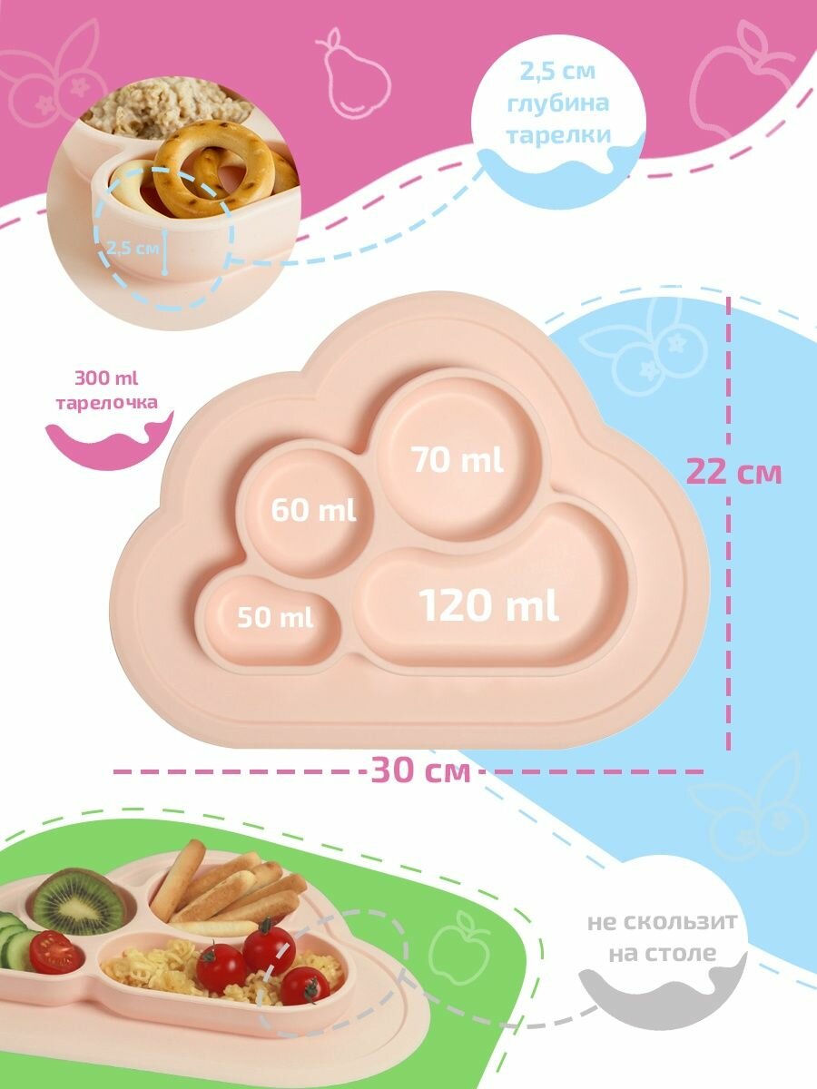 Тарелка детская силиконовая с секциями на присоске, Tessolo Home персик информация: