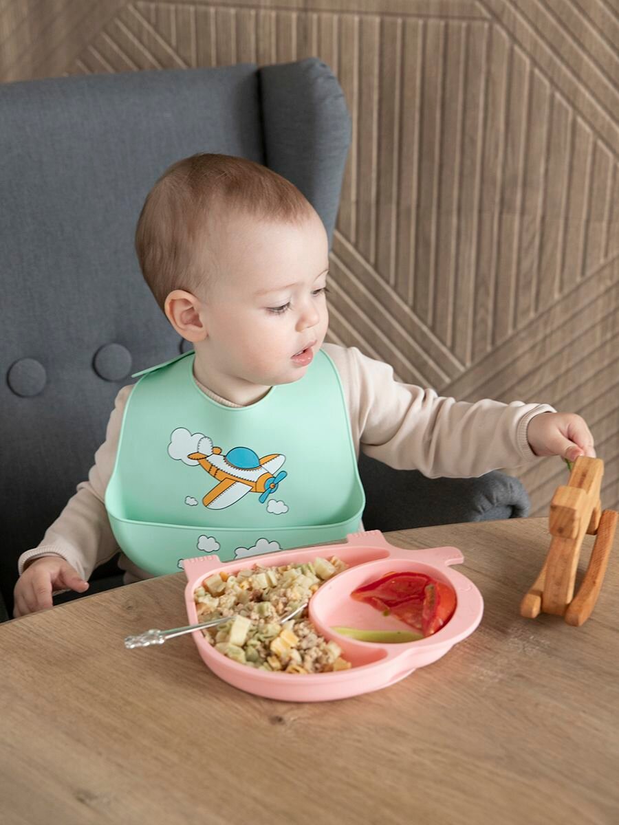 Тарелка детская силиконовая с секциями на присоске, Tessolo Home салатовый 480 ₽