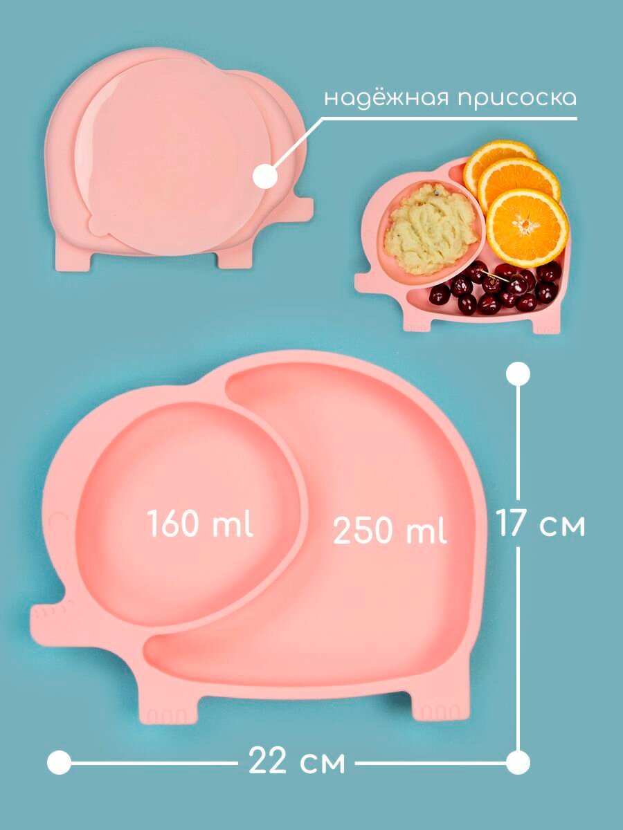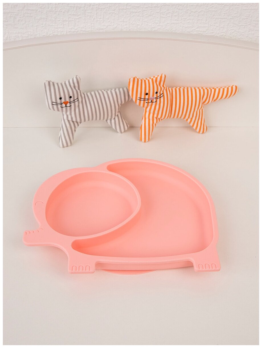 Тарелка детская силиконовая с секциями на присоске, Tessolo Home, слоник, розовый информация: