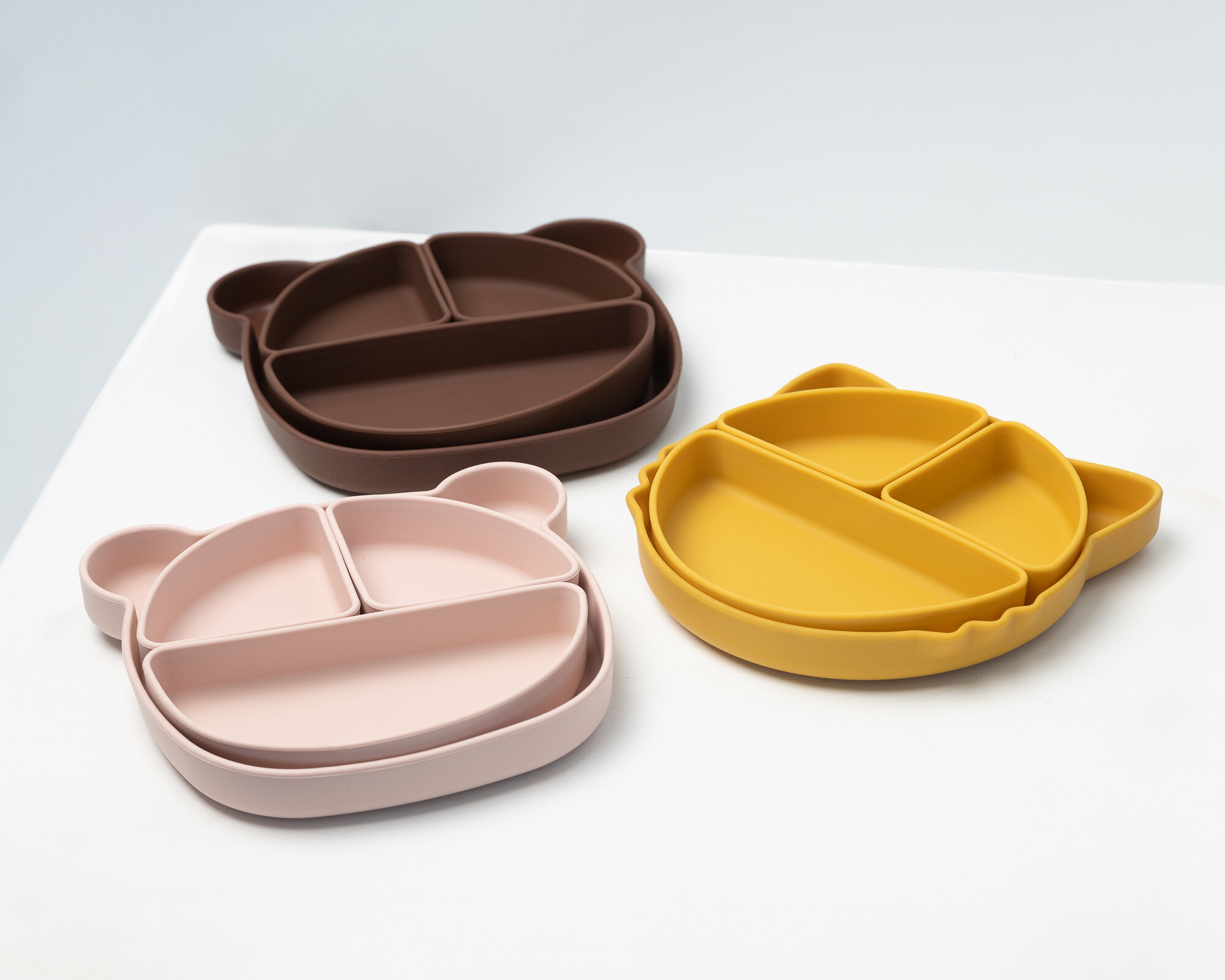 Тарелка силиконовая секционная на присосках; детская посуда, первый прикорм, 4 секции