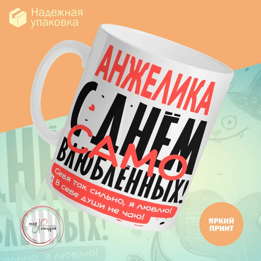 Кружка, "Анжелика, с днём само влюблённых", на день рождения, в подарок для подруги, девушки, 330 мл информация: