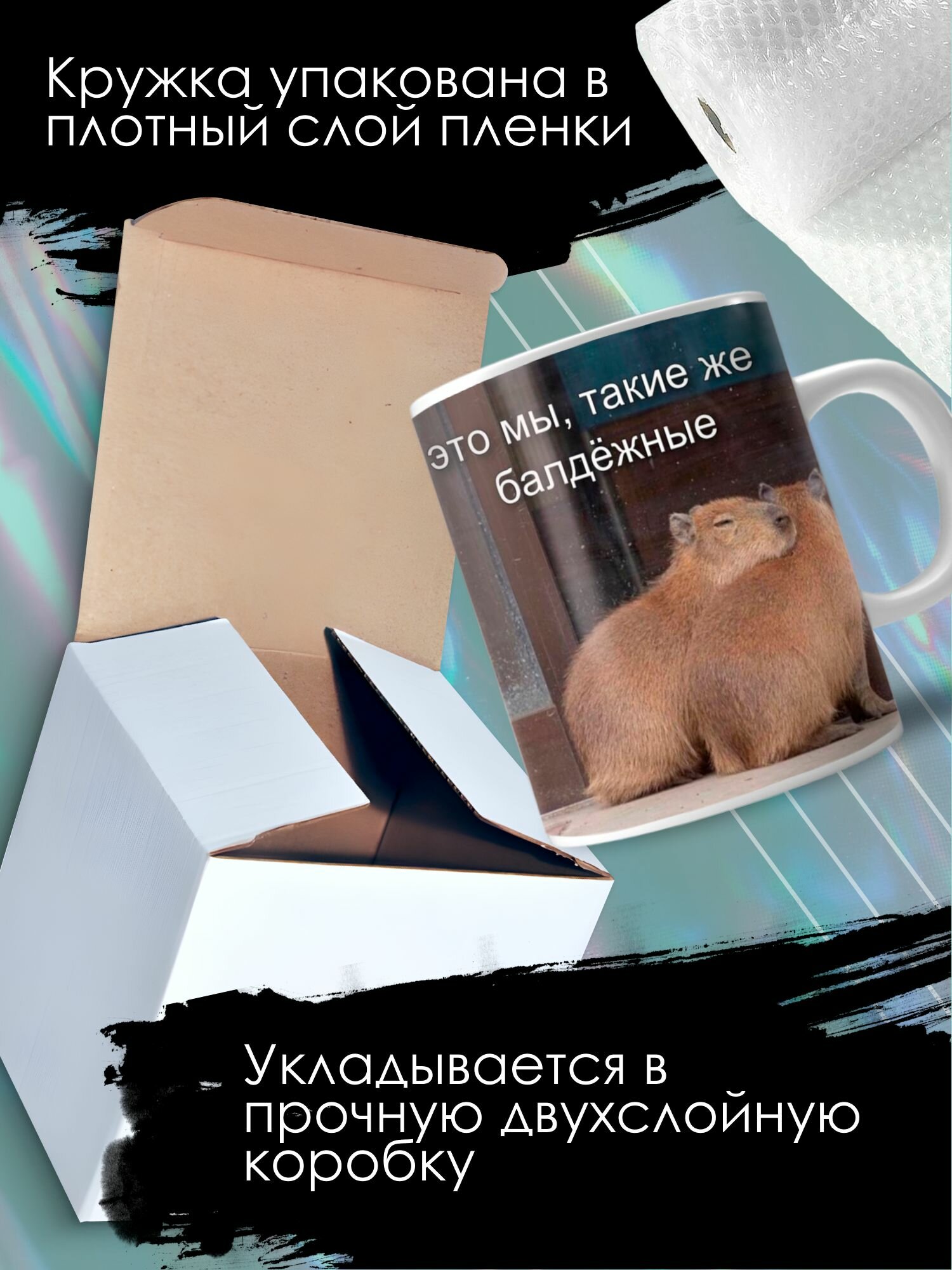 Кружка с принтом капибара с приколом мем информация: