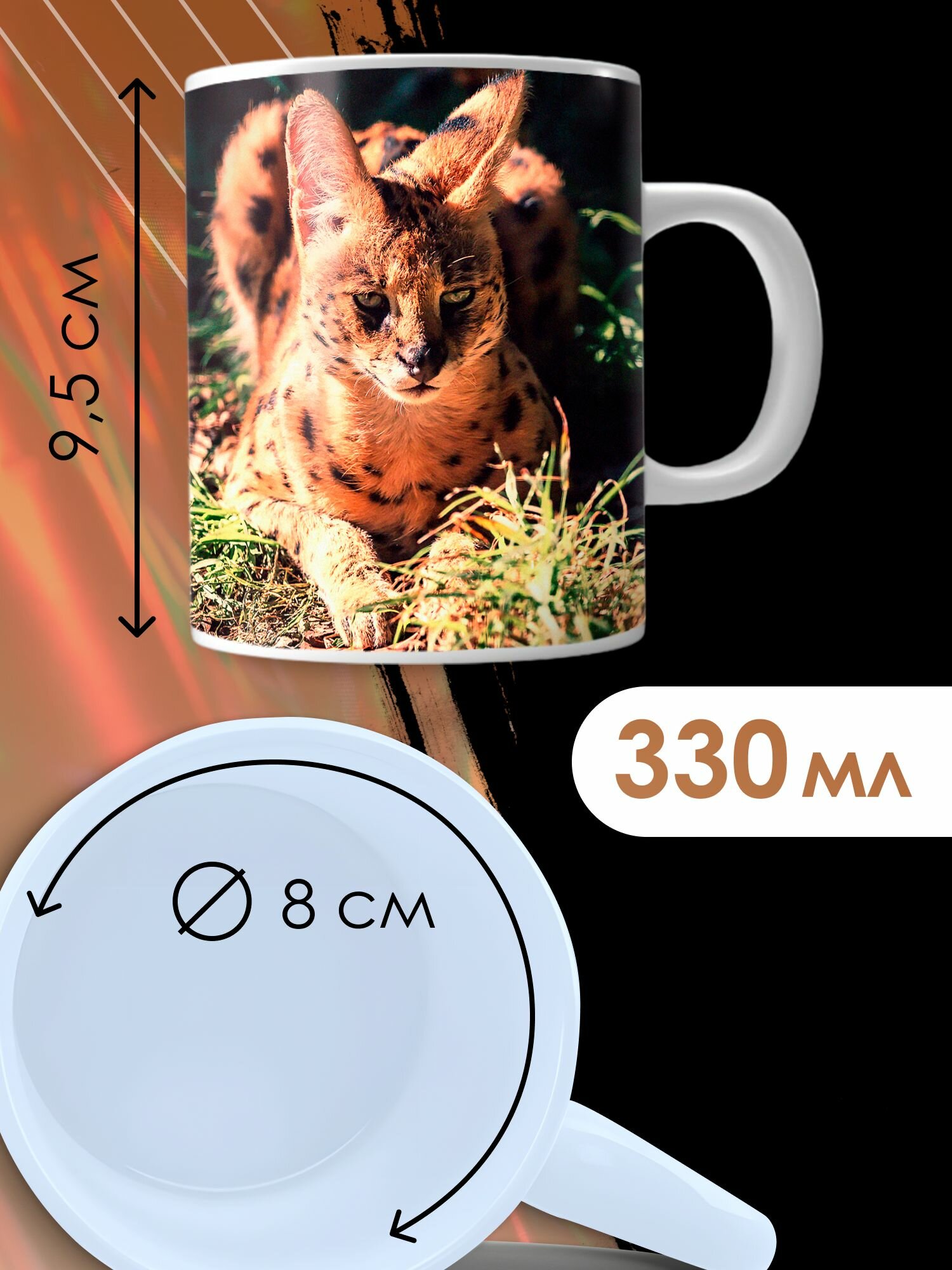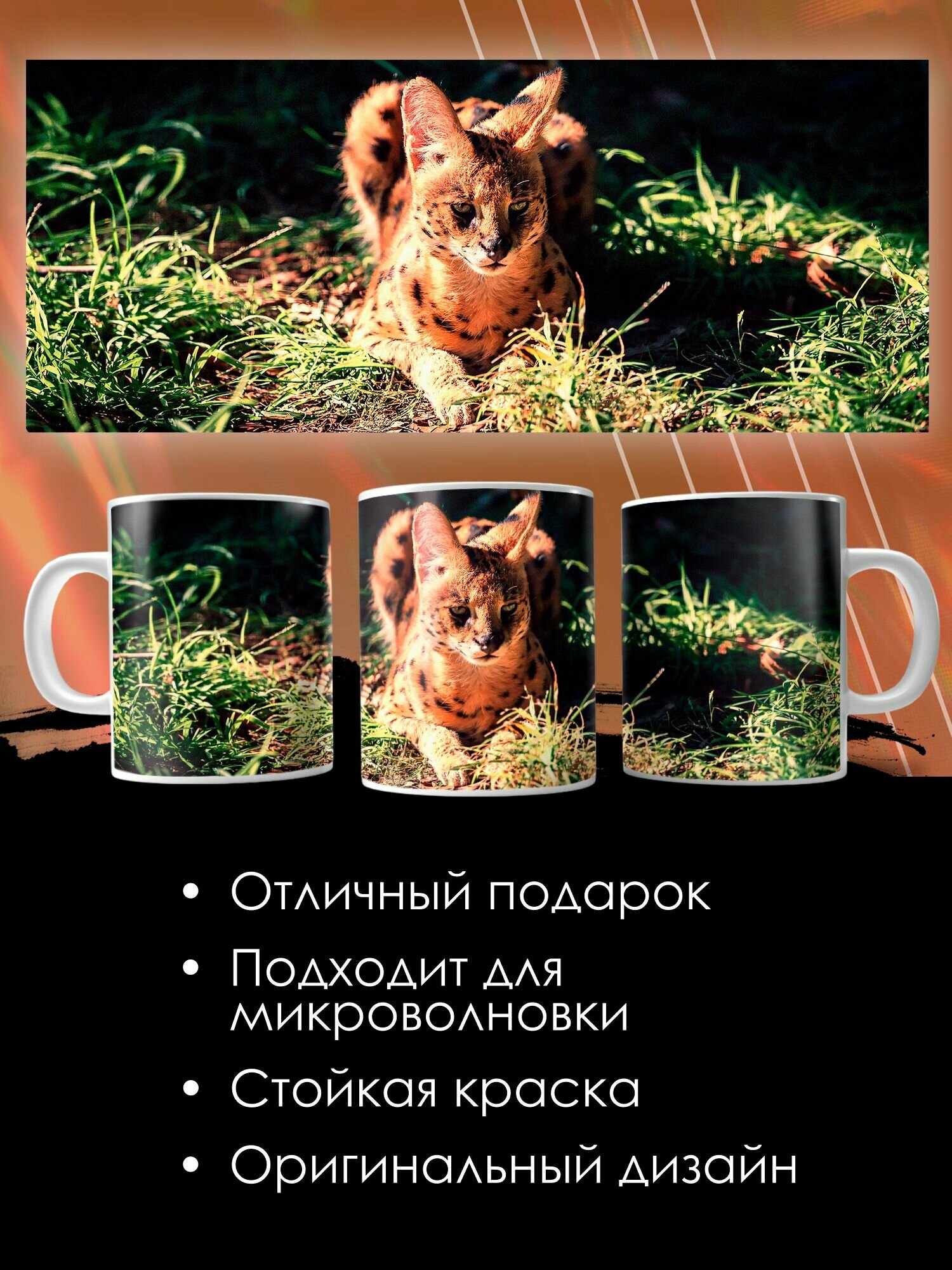 Кружка с принтом Сервал африканские животные информация: