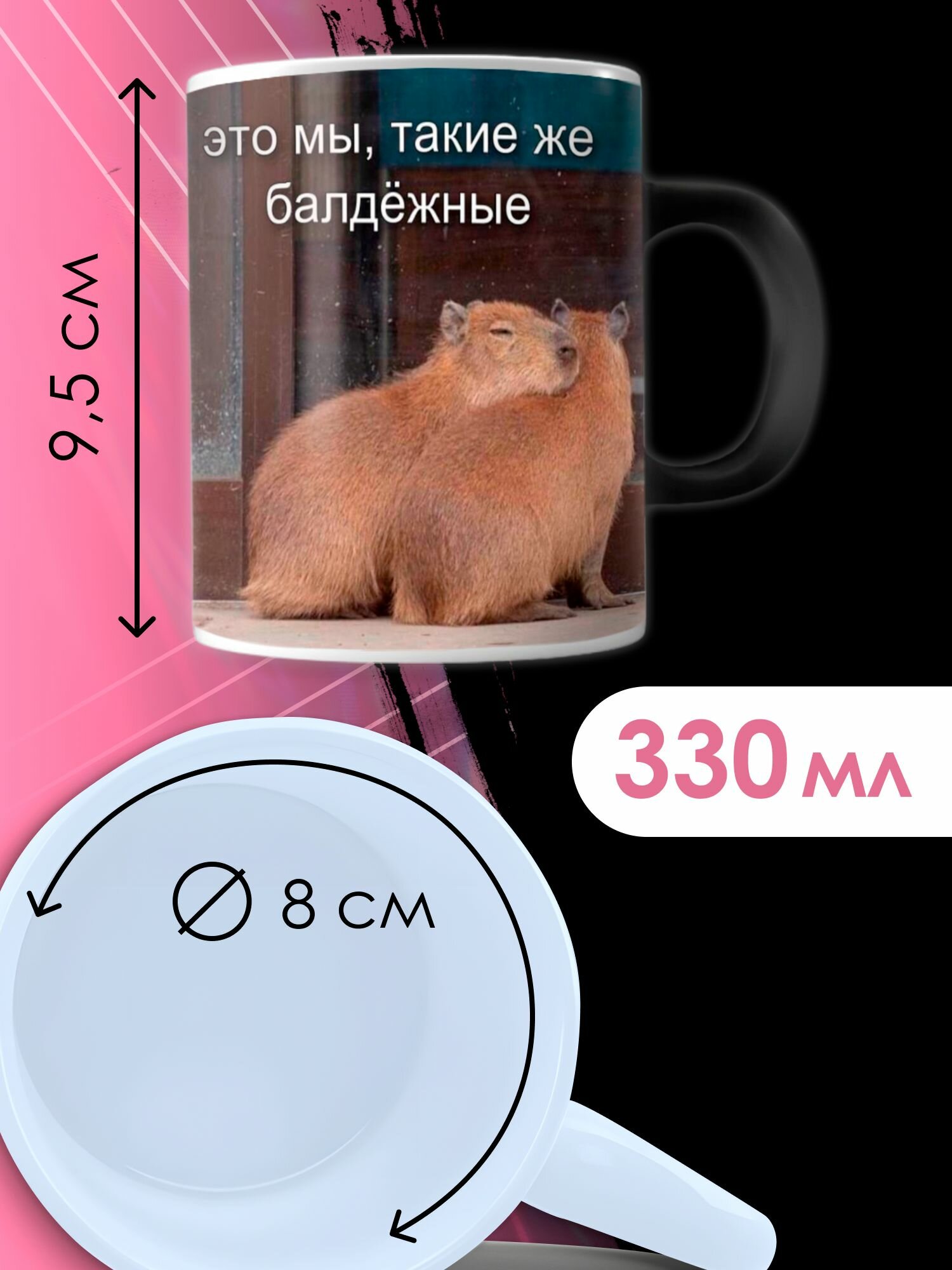 Кружка хамелеон капибара с приколом мем информация: