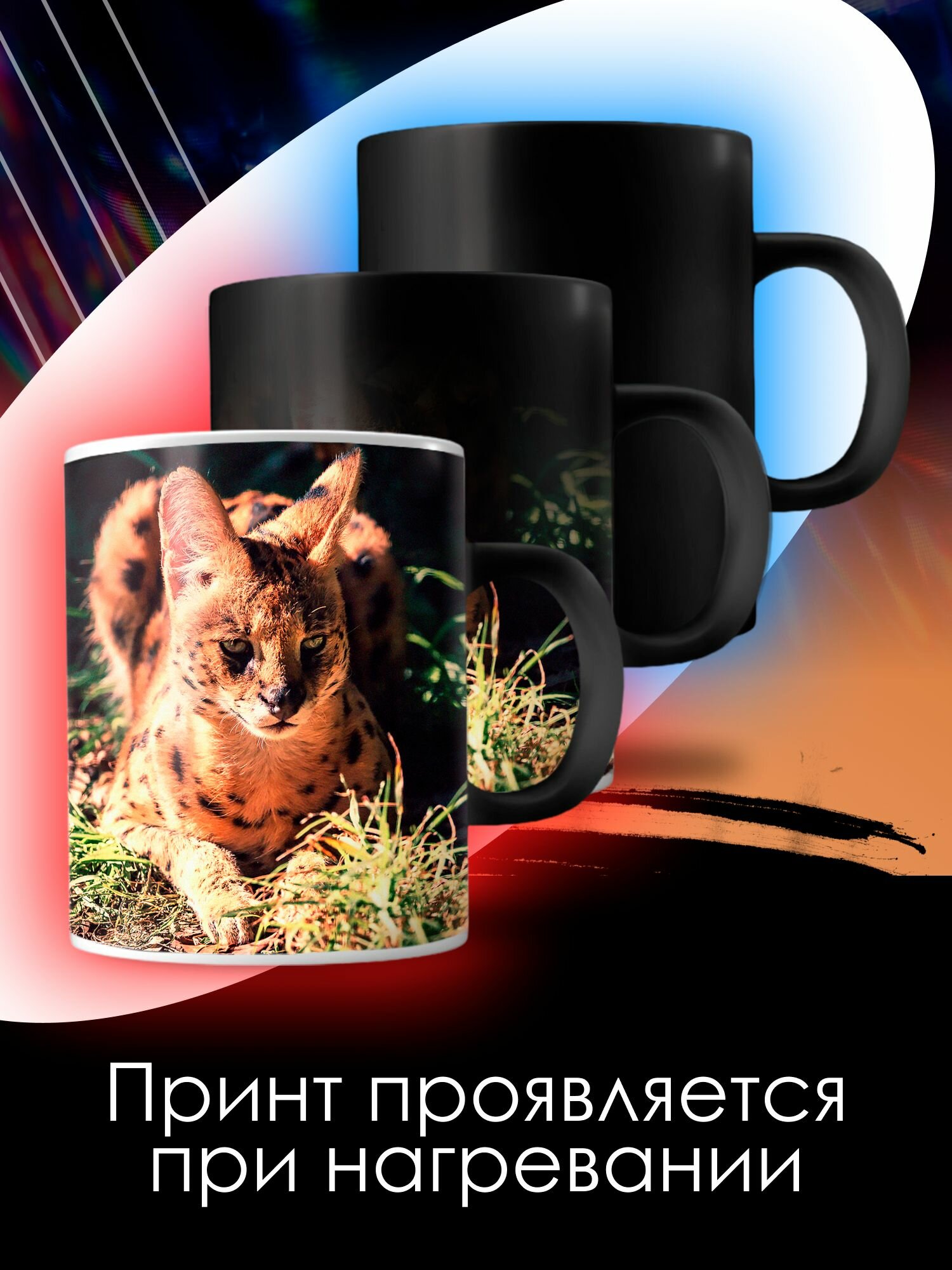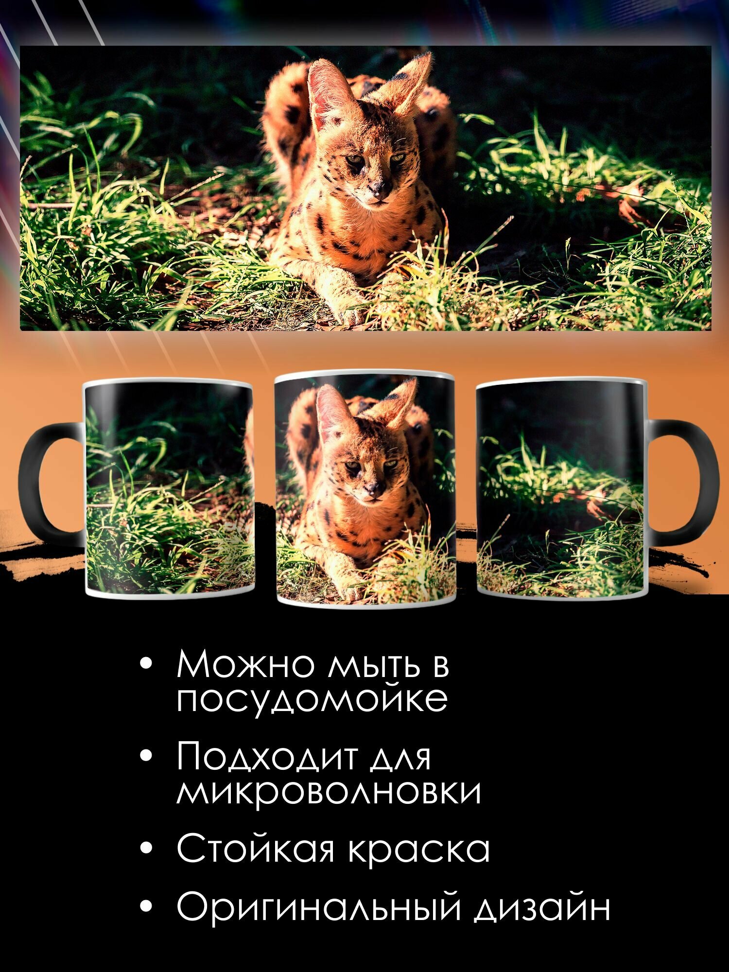 10 цен на Кружка Хамелеон с принтом Сервал африканские животные