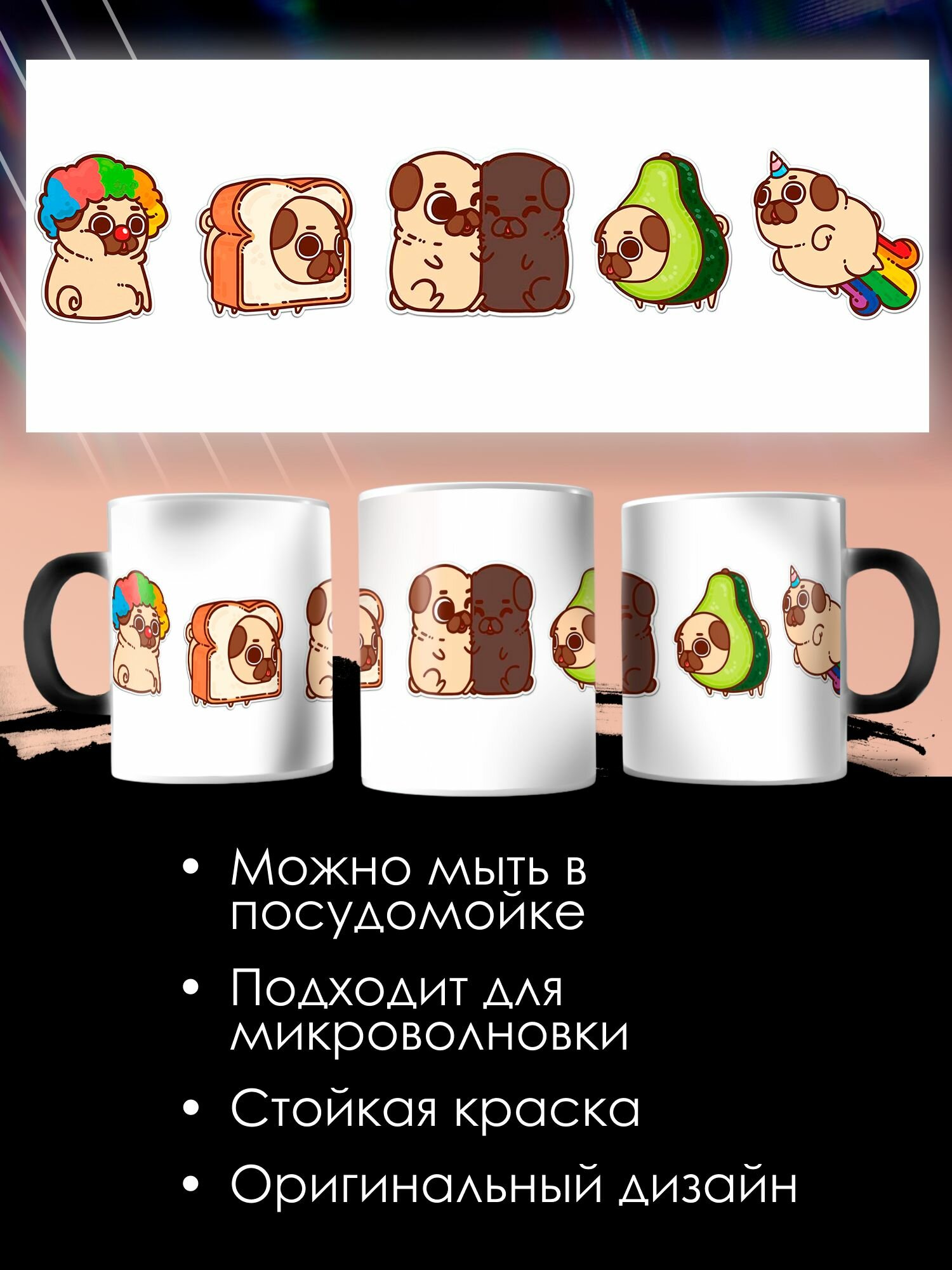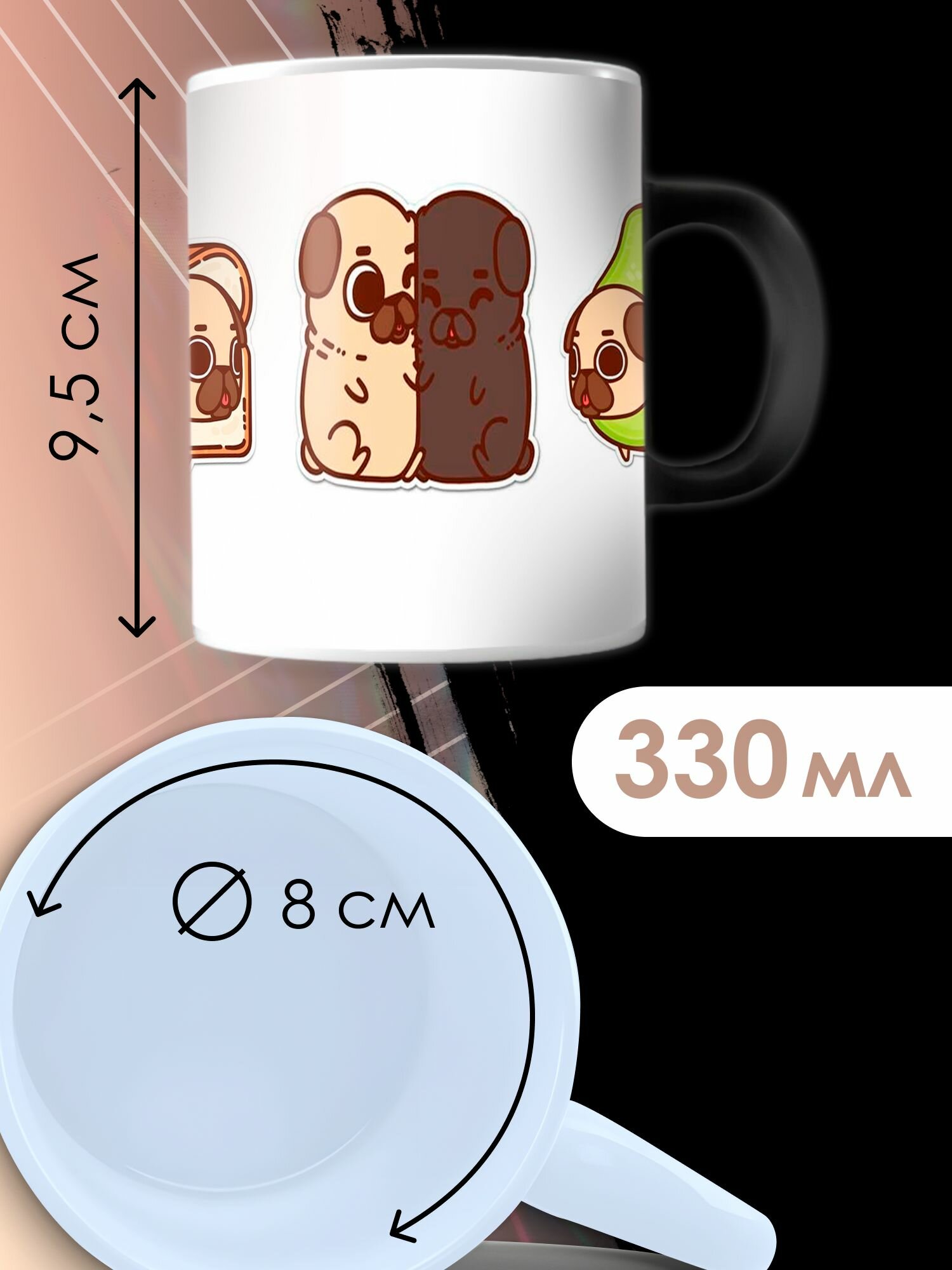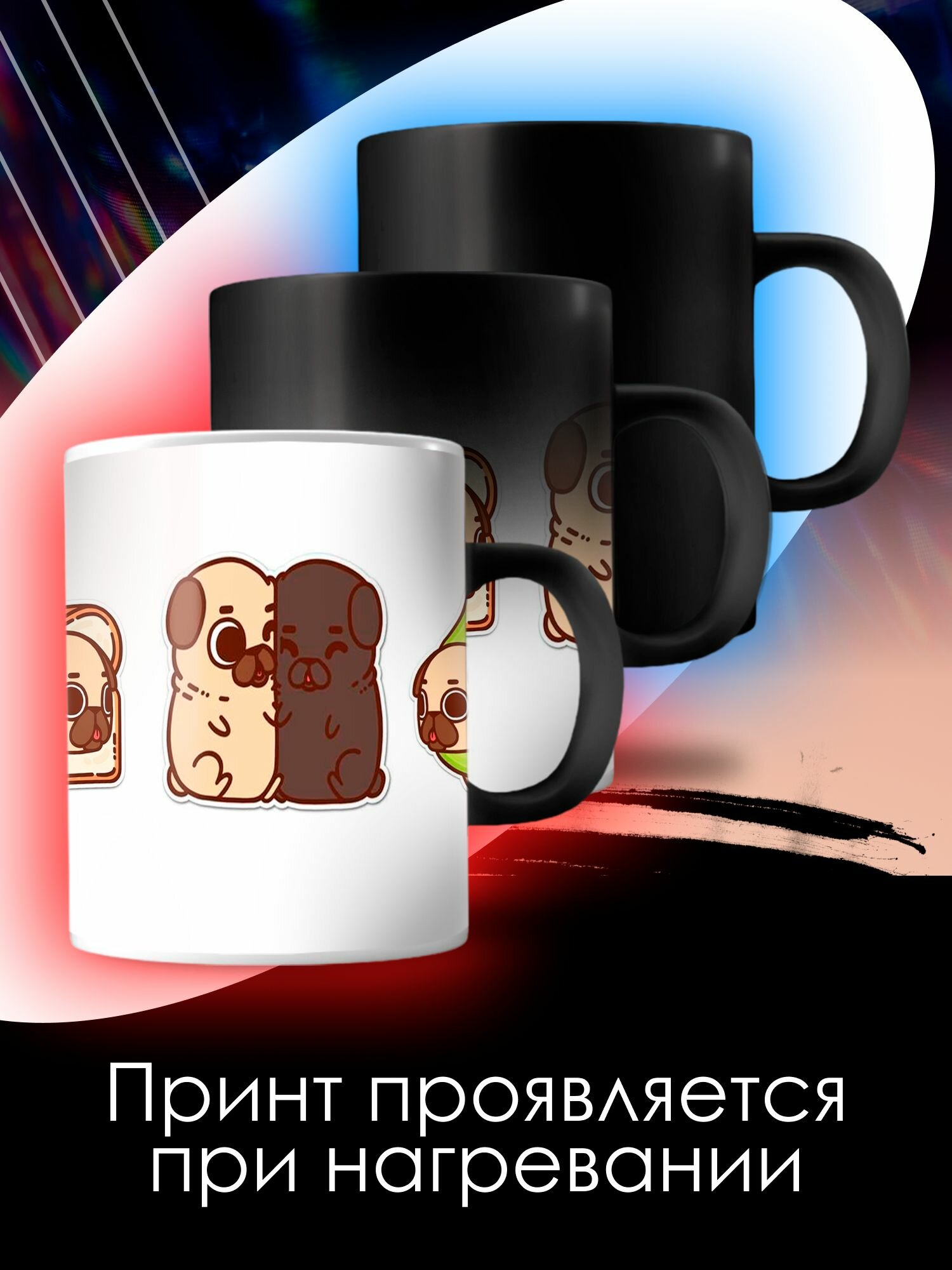10 цен на Кружка Хамелеон с принтом Милые мопсики