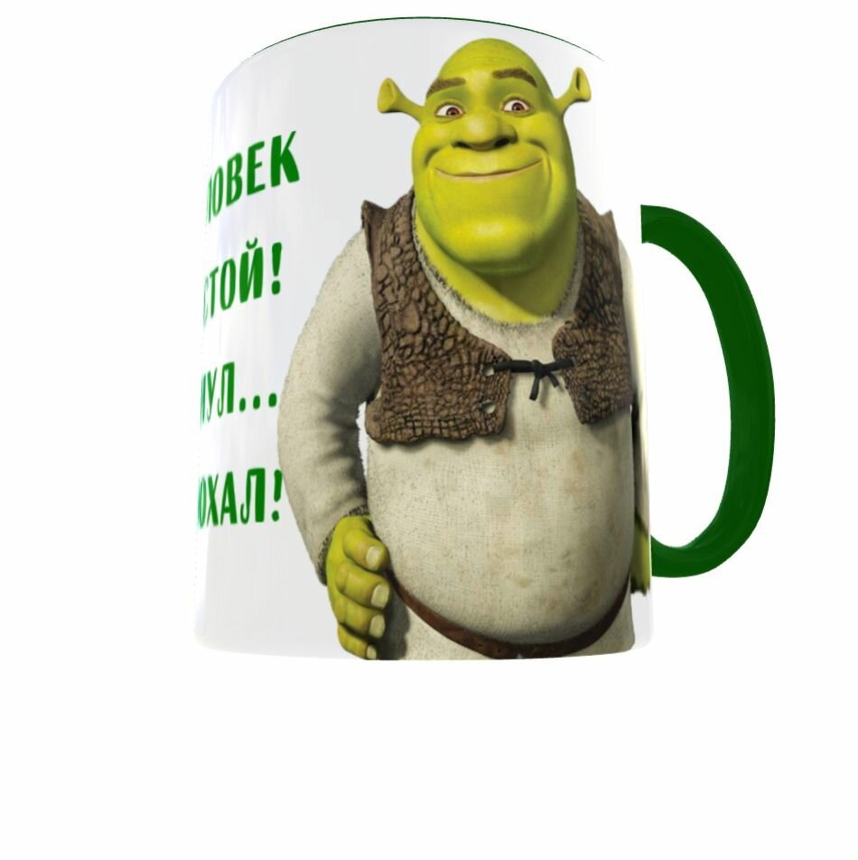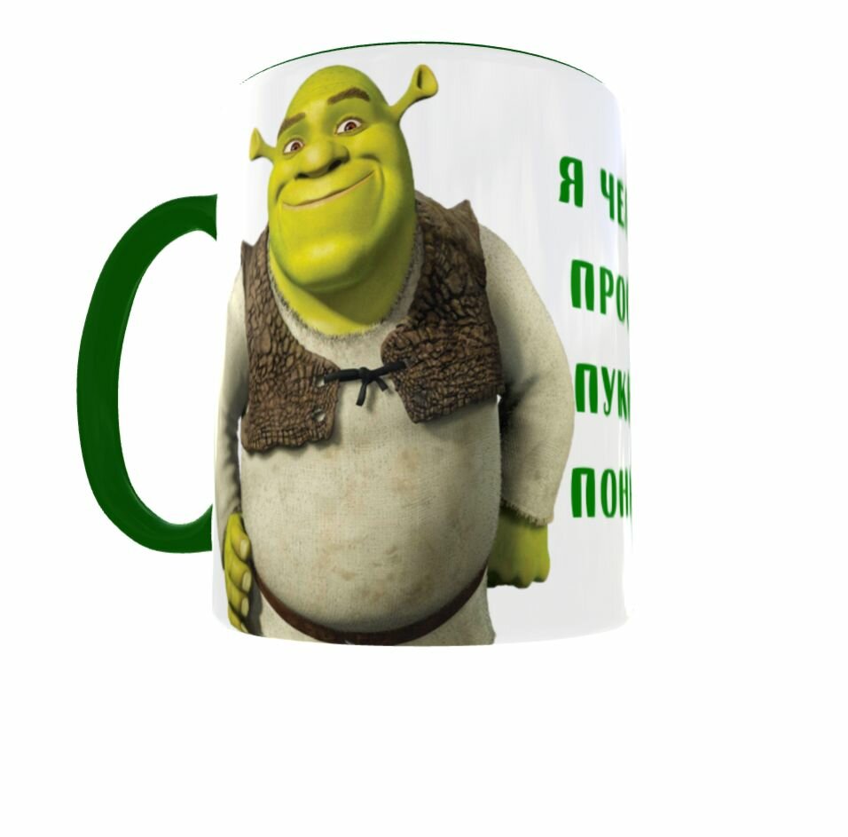 10 цен на Пукнул - Понюхал)/ шрек - хочу какать / Кружка с приколом Премиум класса/ Зелёненькая стильная / МЕМ / На подарок / Уникальный бокал ручной, авторской работы подымающий настроение всем)/330 мл