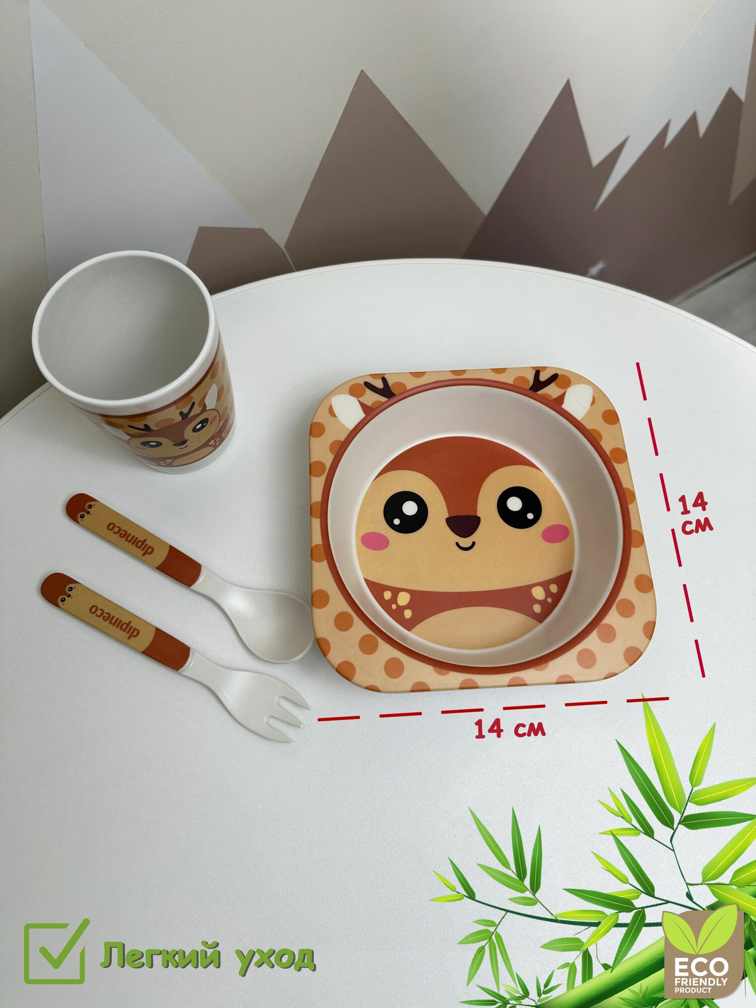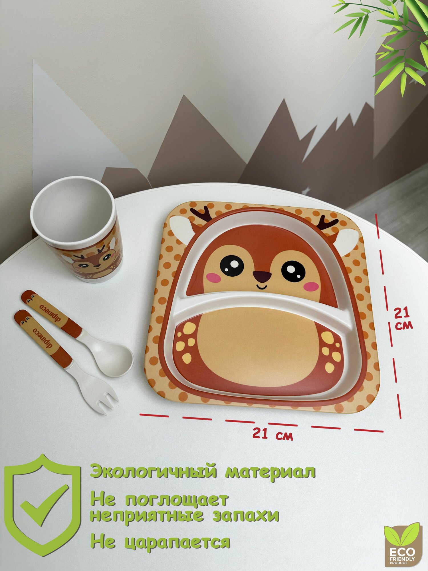 Детская посуда из бамбукового волокна, 5 предметов, Подарочный набор посуды для кормления малышей с Олененком информация: