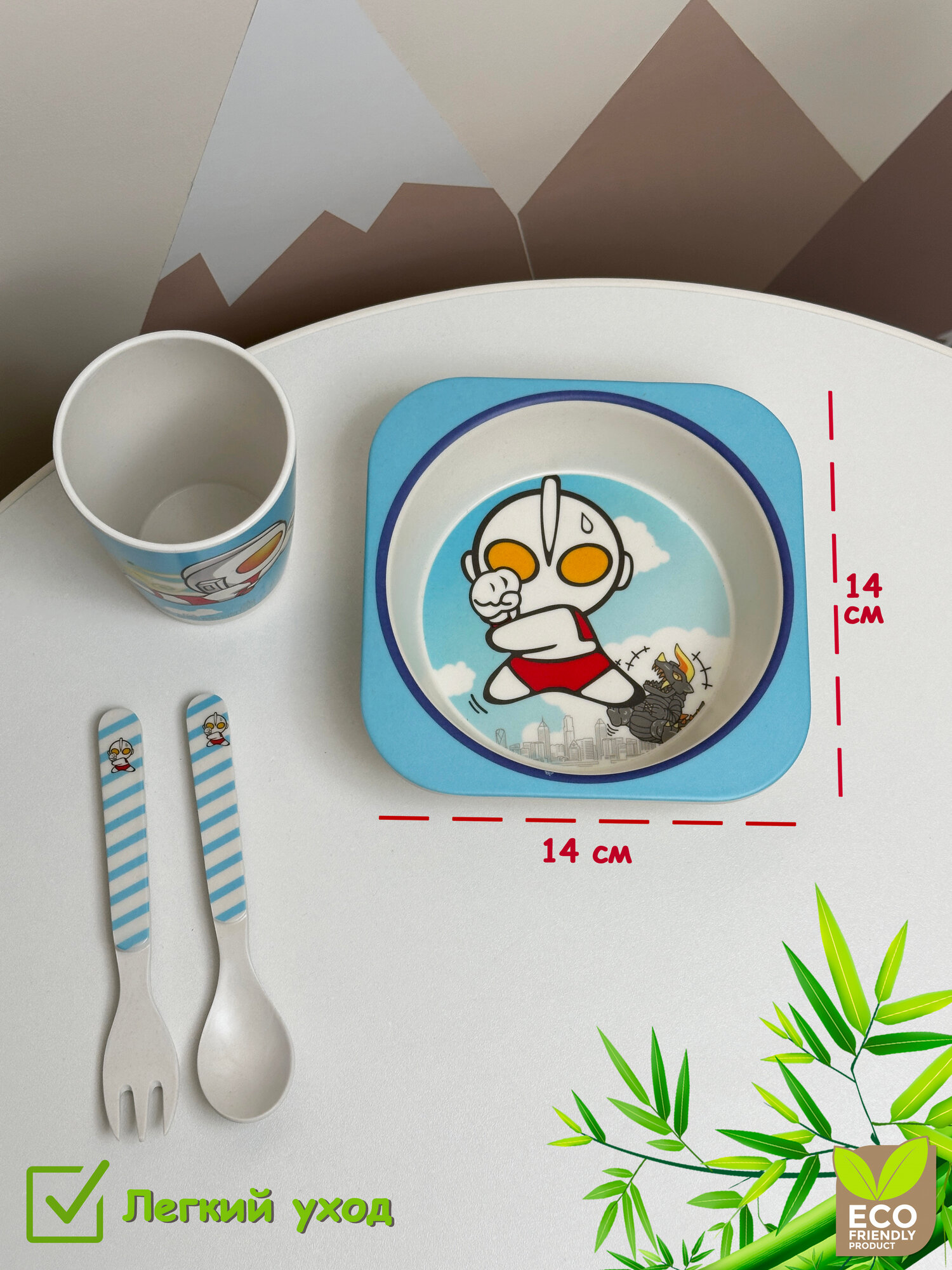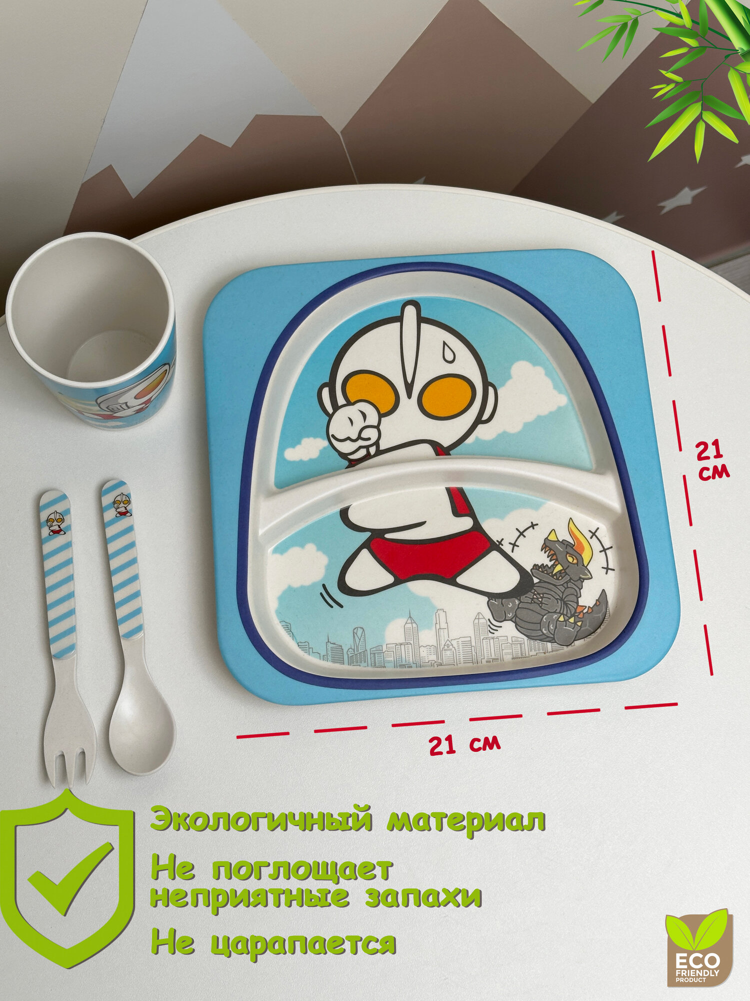 Отзывы на Детская посуда из бамбукового волокна, 5 предметов, Подарочный набор посуды для кормления малышей с роботом Ультрамен
