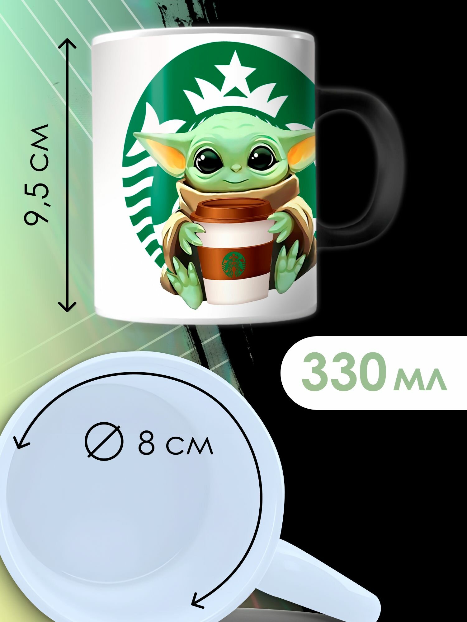 Кружка Хамелеон с принтом Малыш Йода подарочная информация: