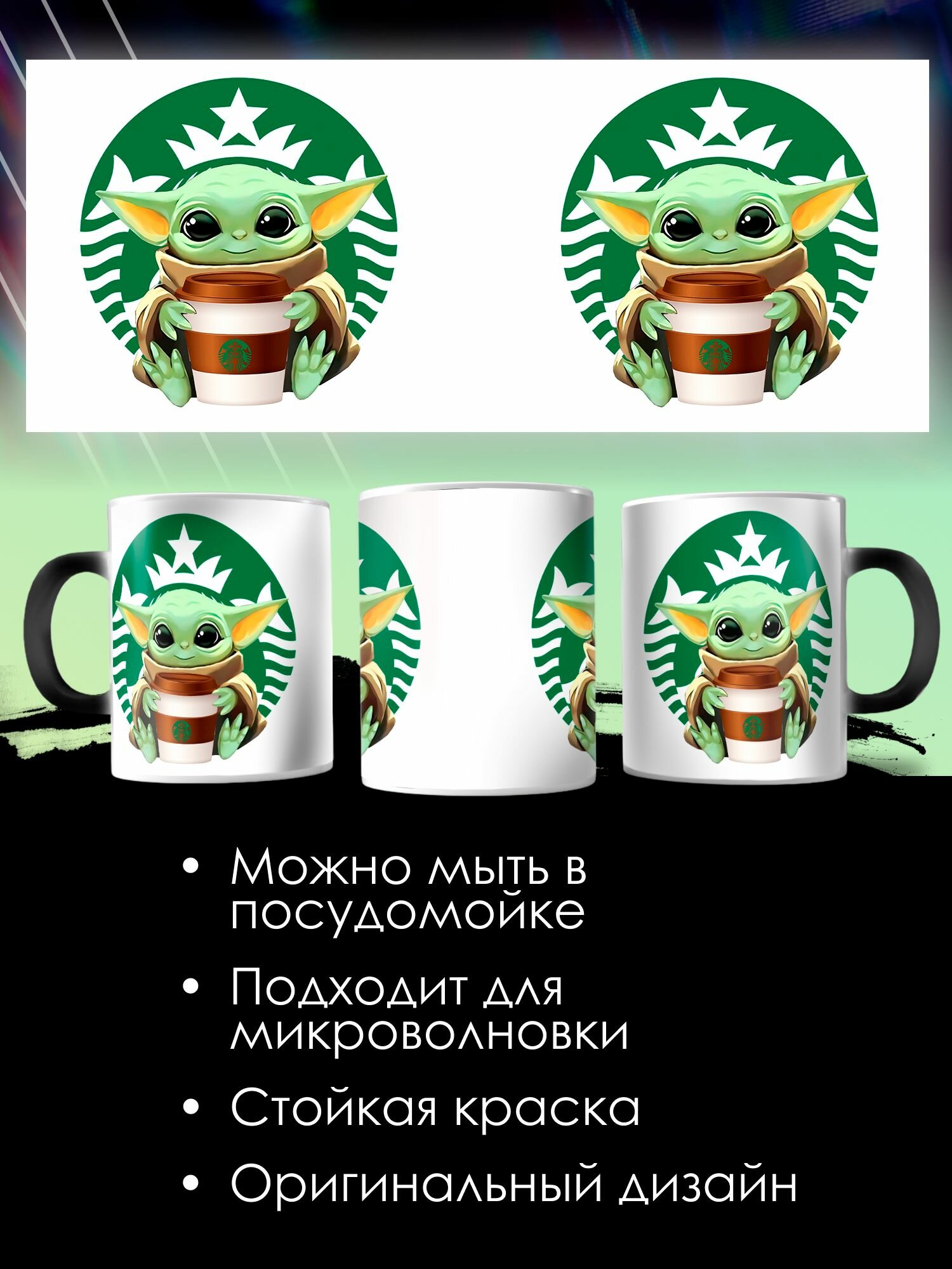 10 цен на Кружка Хамелеон с принтом Малыш Йода подарочная