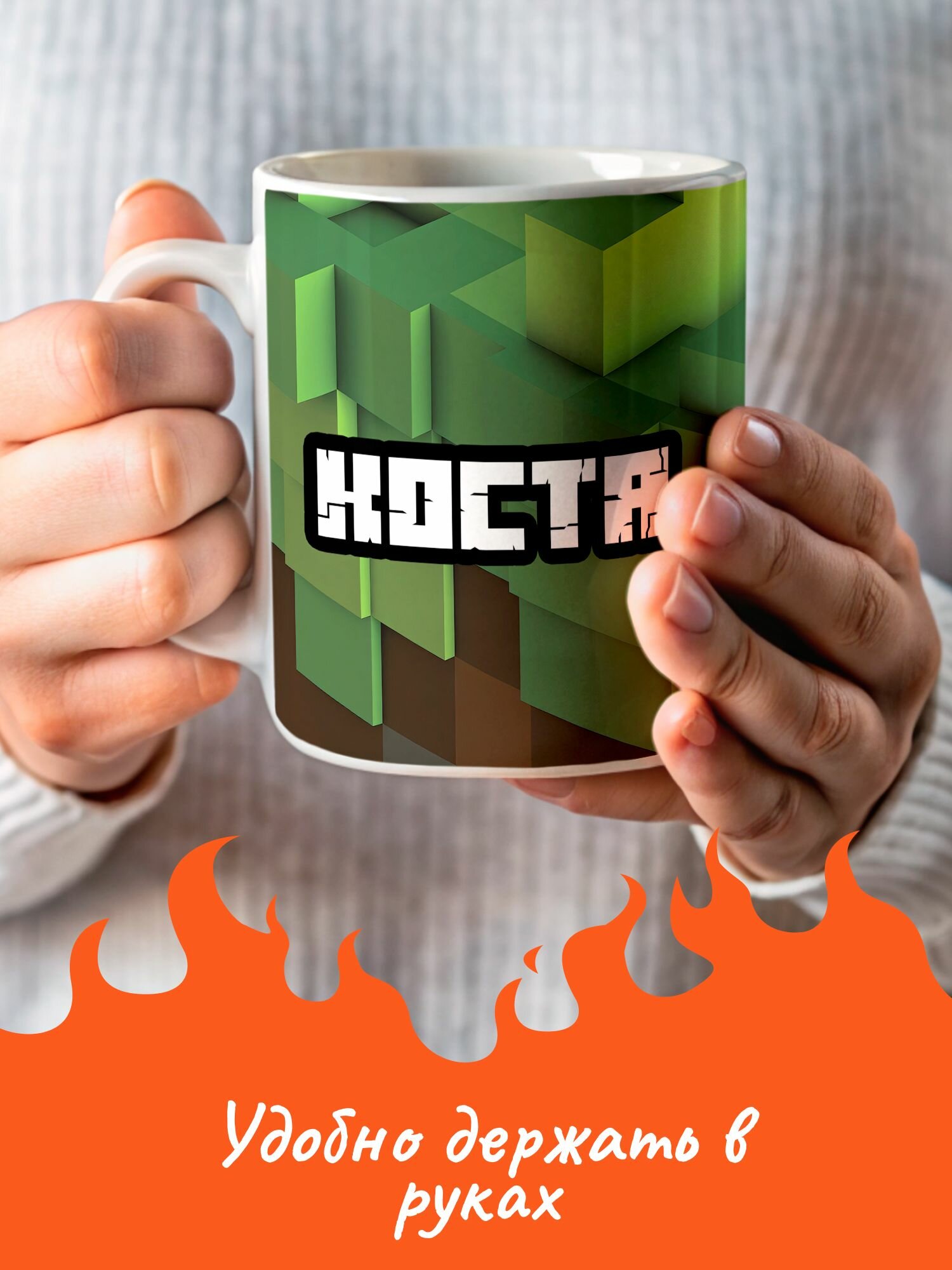 Кружка именная с принтом minecraft Костя информация: