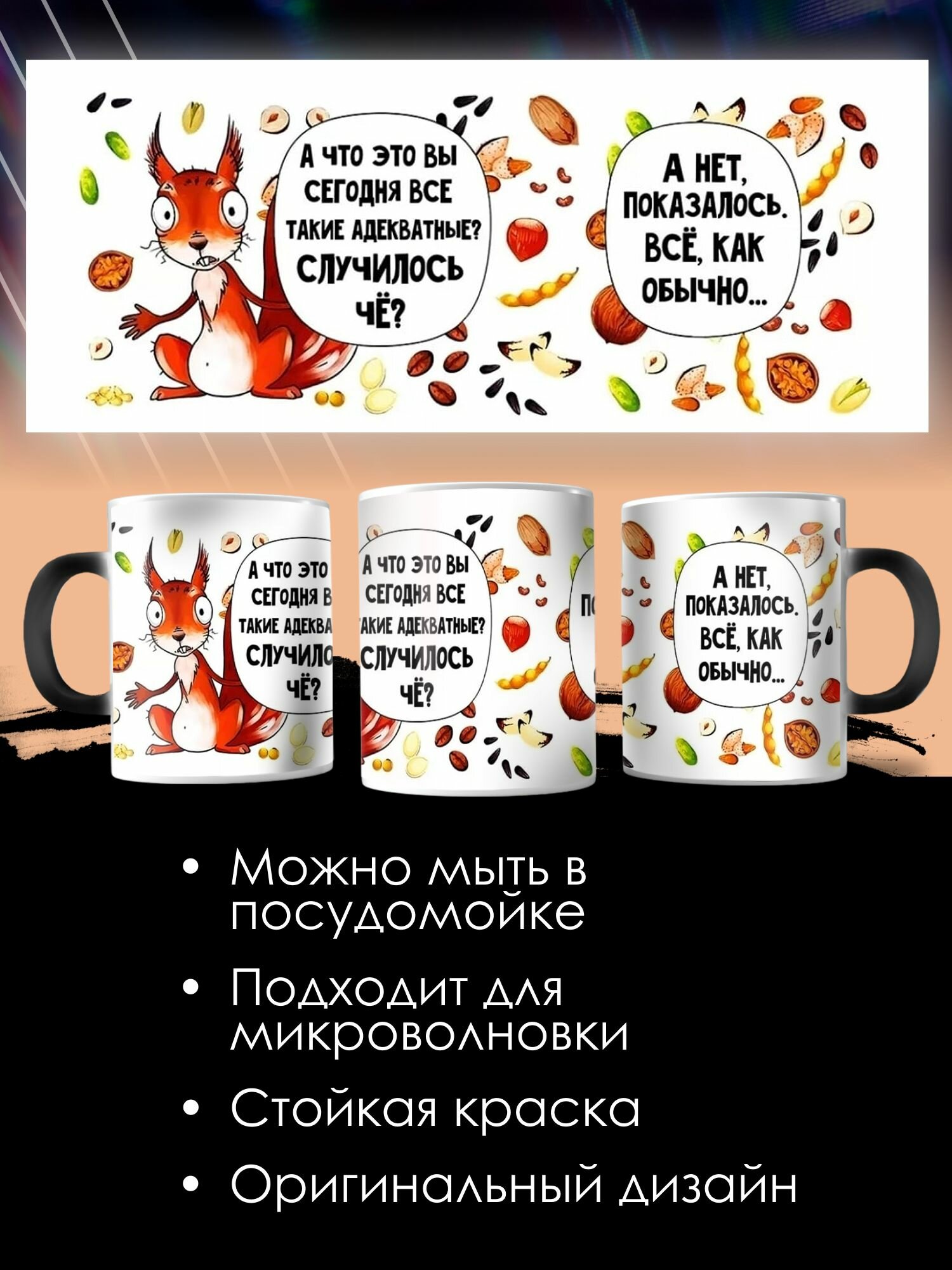 10 цен на Кружка Хамелеон с принтом Белка с надписью