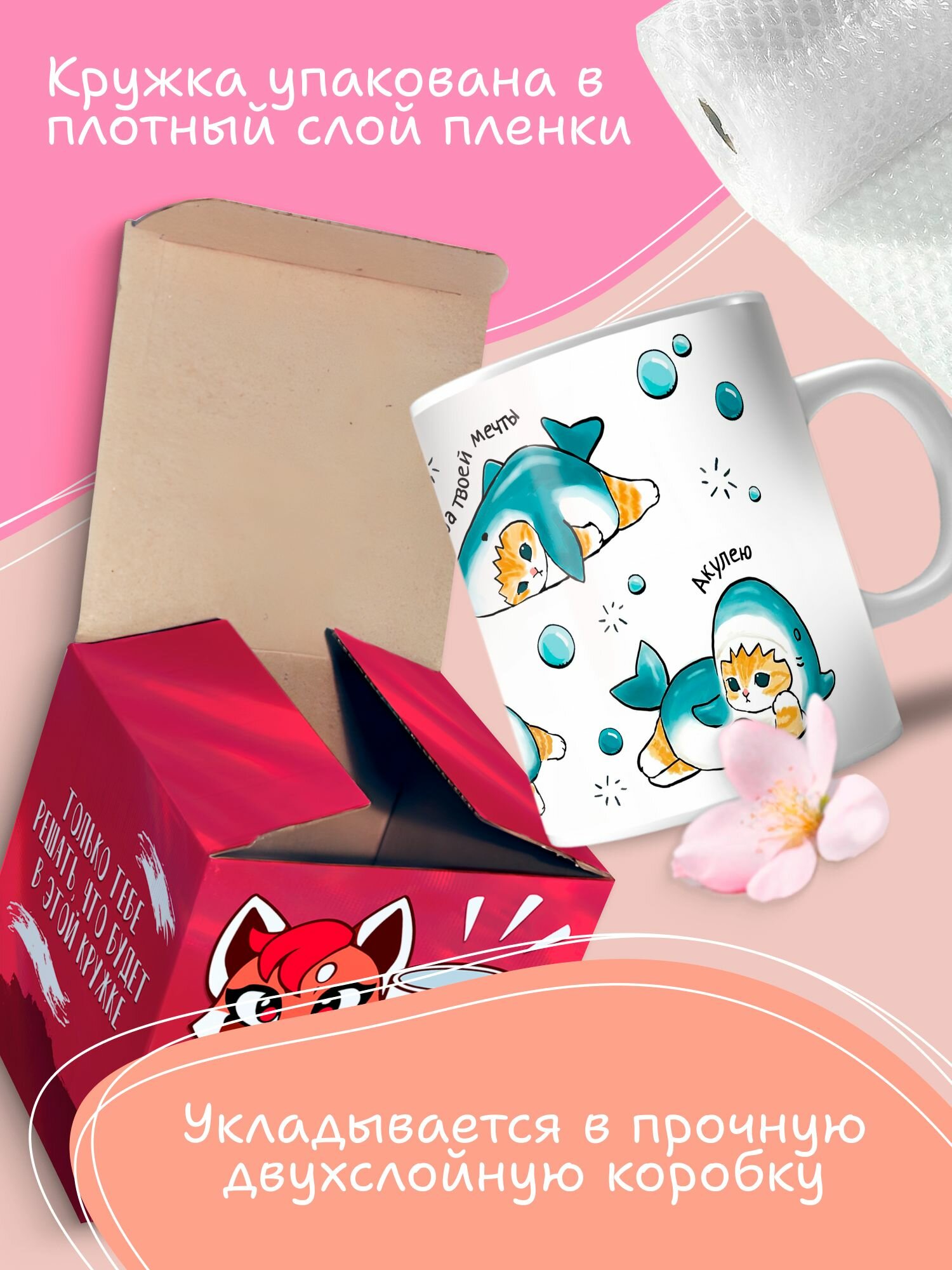 Кружка с принтом Кот Акула фразы информация: