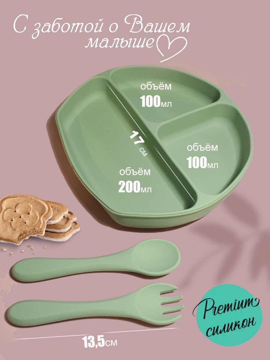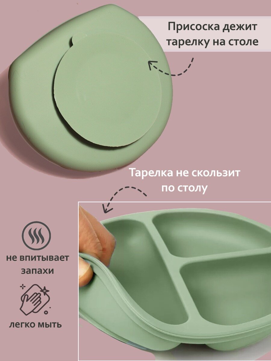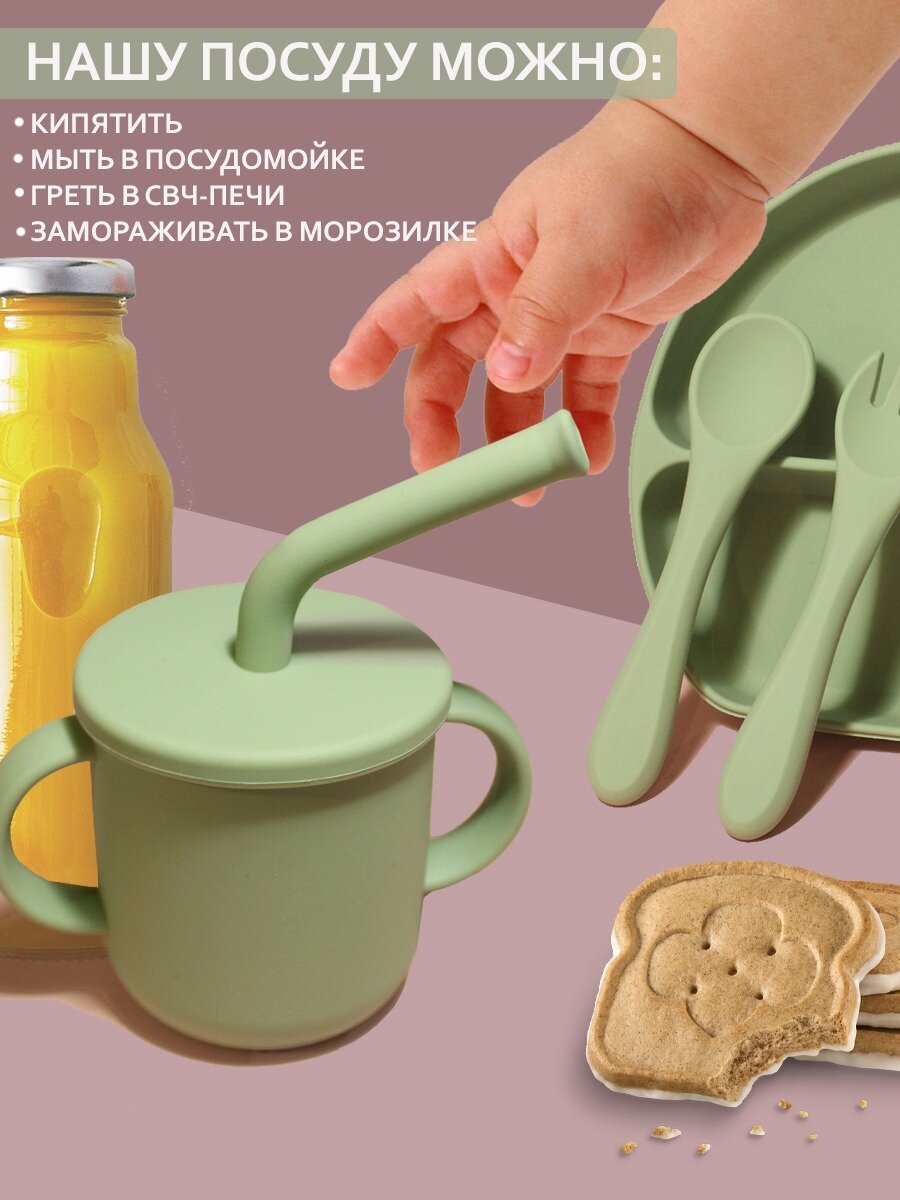 Набор посуды, силикон, от 0 месяцев до 3 лет, для детей, зеленый информация: