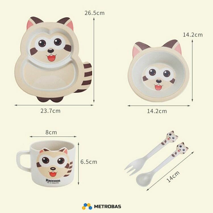 Набор детской посуды, "Енот", тарелка, миска, ложка, вилка, стакан информация: