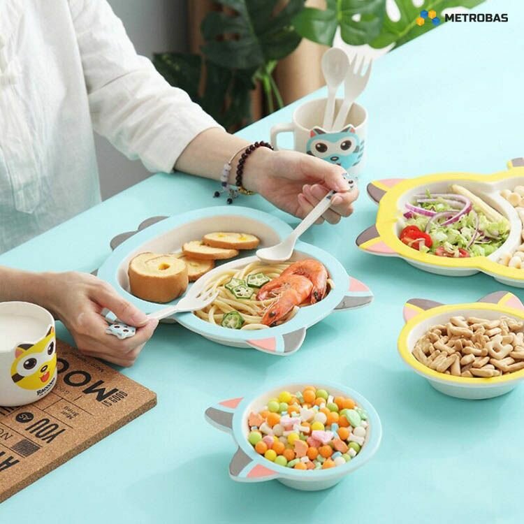10 цен на Набор детской посуды, "Енот", тарелка, миска, ложка, вилка, стакан