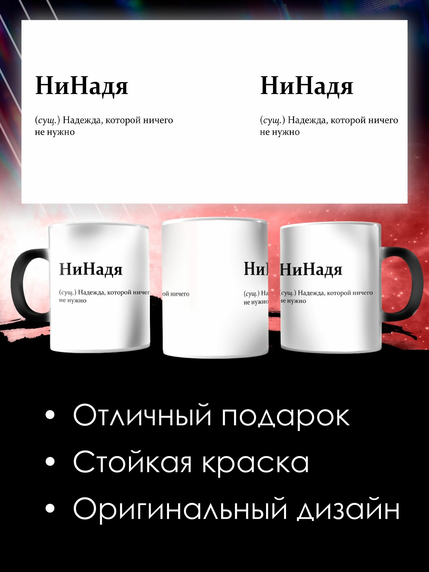 10 цен на Кружка хамелеон с приколом Надежда именная