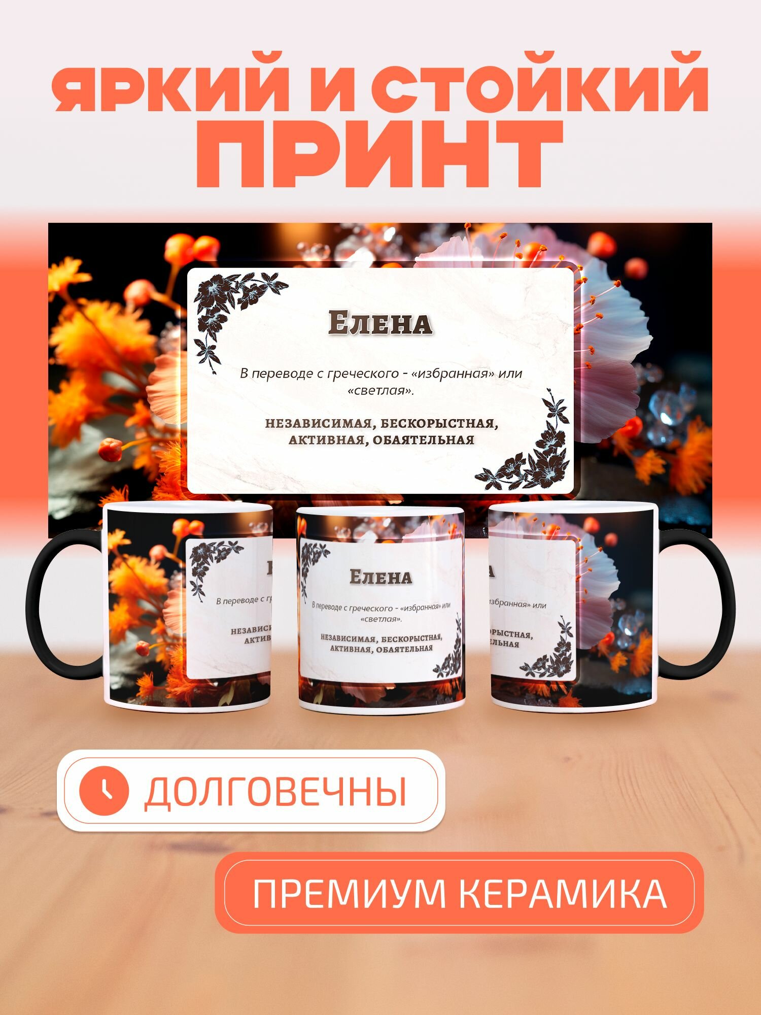 10 цен на Кружка Хамелеон с принтом именная Елена