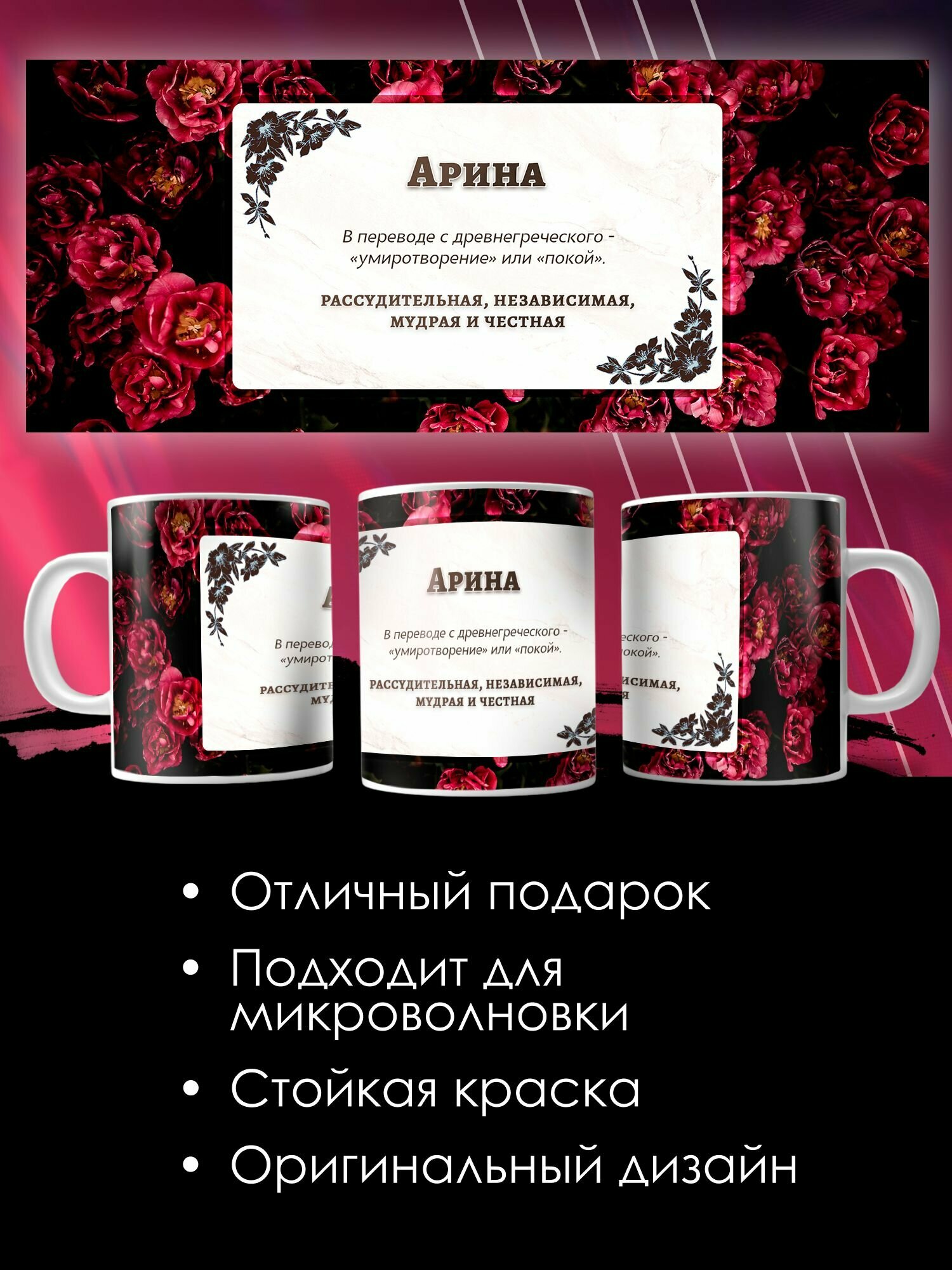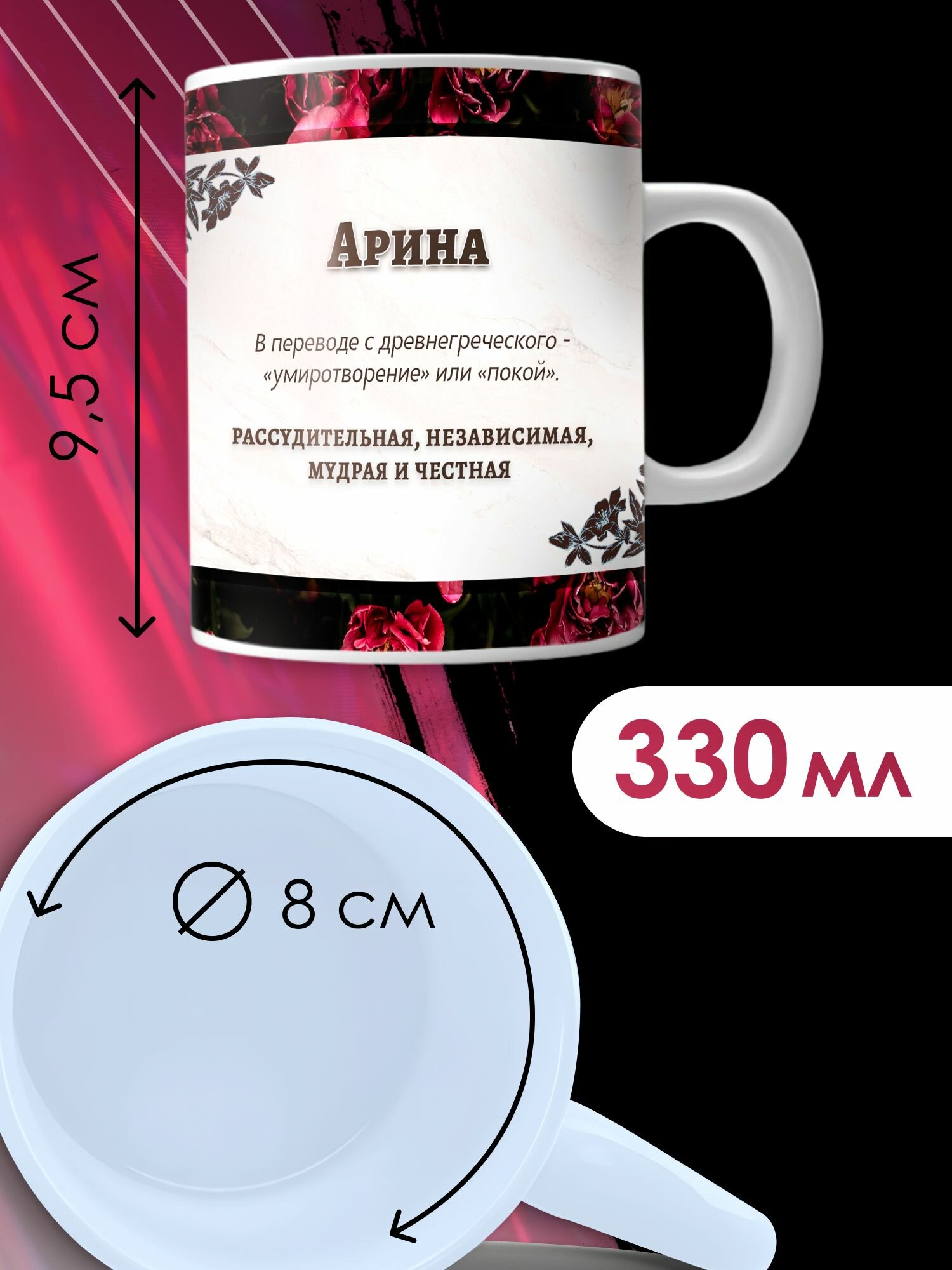 Кружка с принтом именная Арина информация: