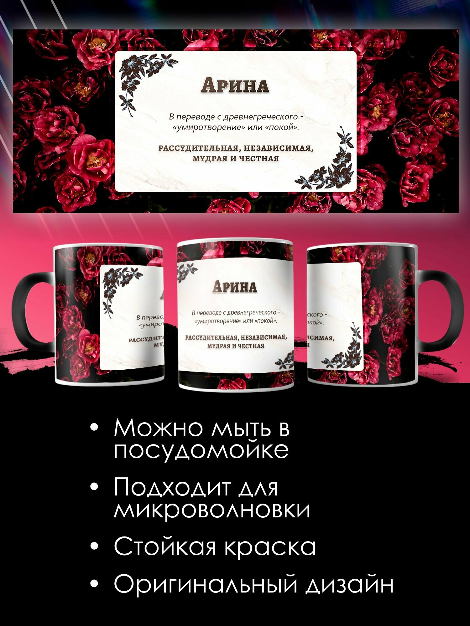 10 цен на Кружка Хамелеон с принтом именная Арина