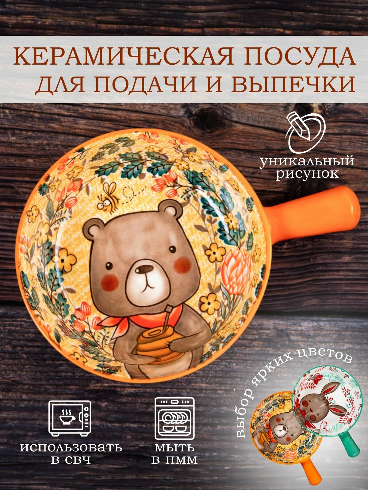 10 цен на Тарелка креативная с круглой ручкой и рисунком "Медвежонок", керамика