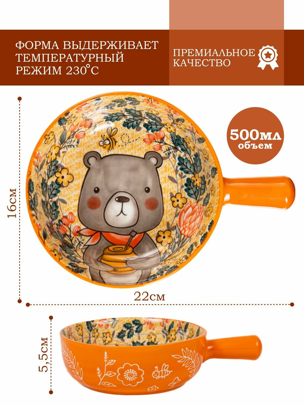 Тарелка креативная с круглой ручкой и рисунком "Медвежонок", керамика информация: