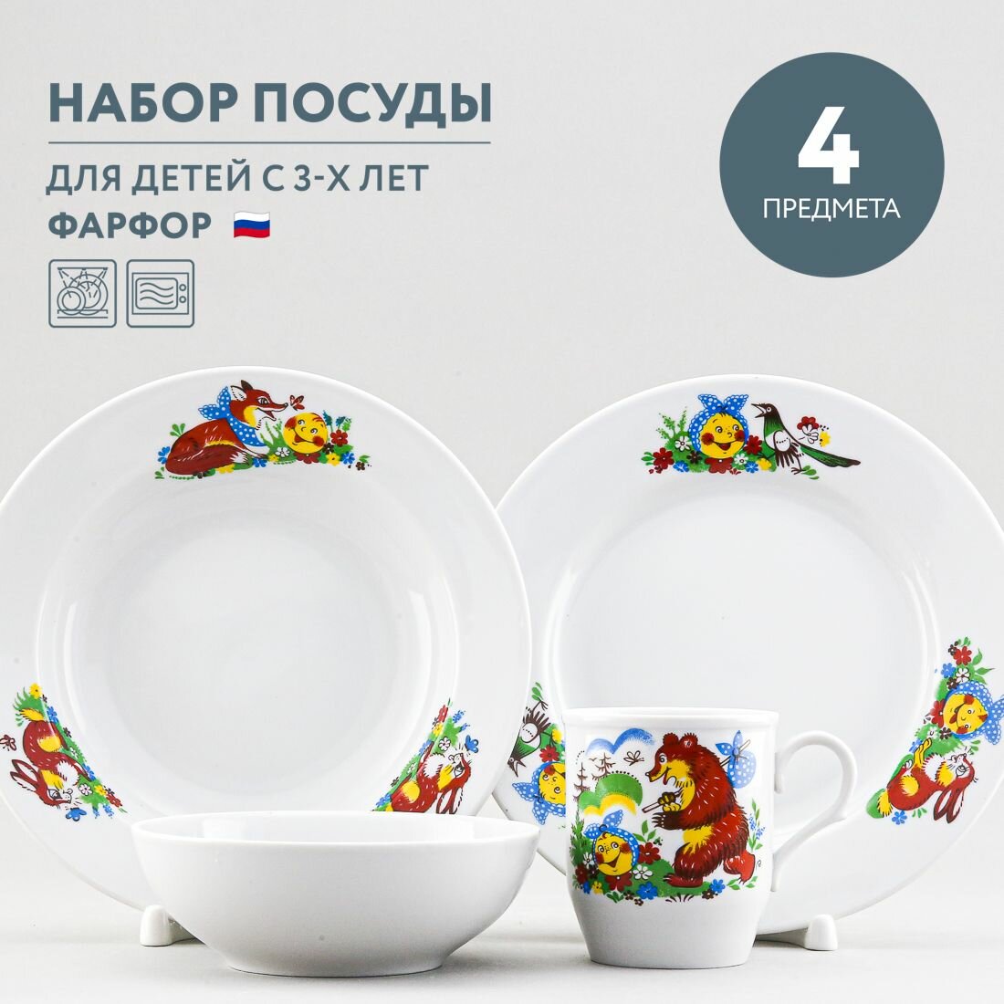 Набор детской посуды Дулевский фарфор "Веселый колобок" 4 предмета информация: