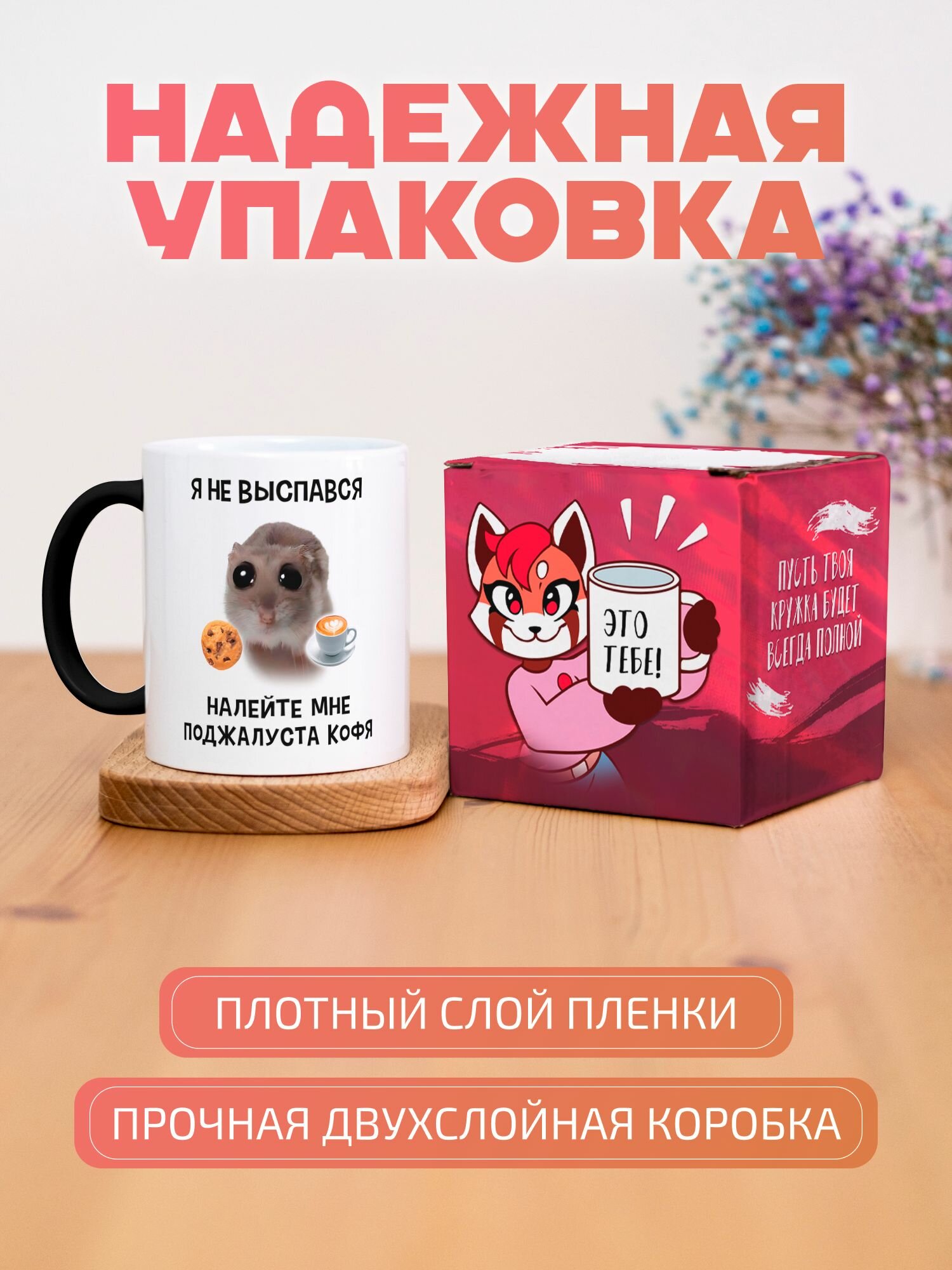 Кружка хамелеон мем с хомяком Я не выспался информация:
