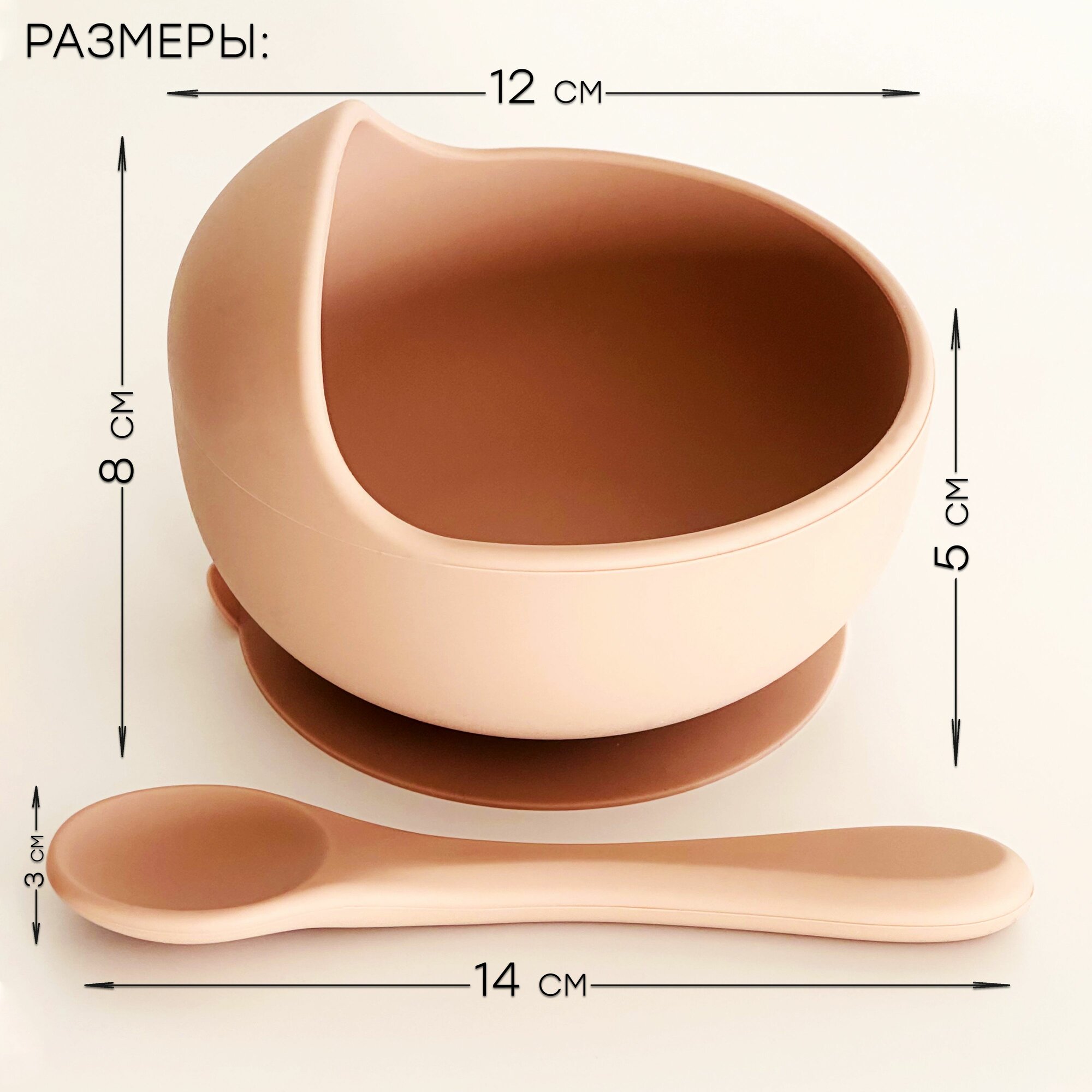 Силиконовая посуда для кормления / Детская тарелка на присоске / Тарелка для обучения с ложкой бежевая информация: